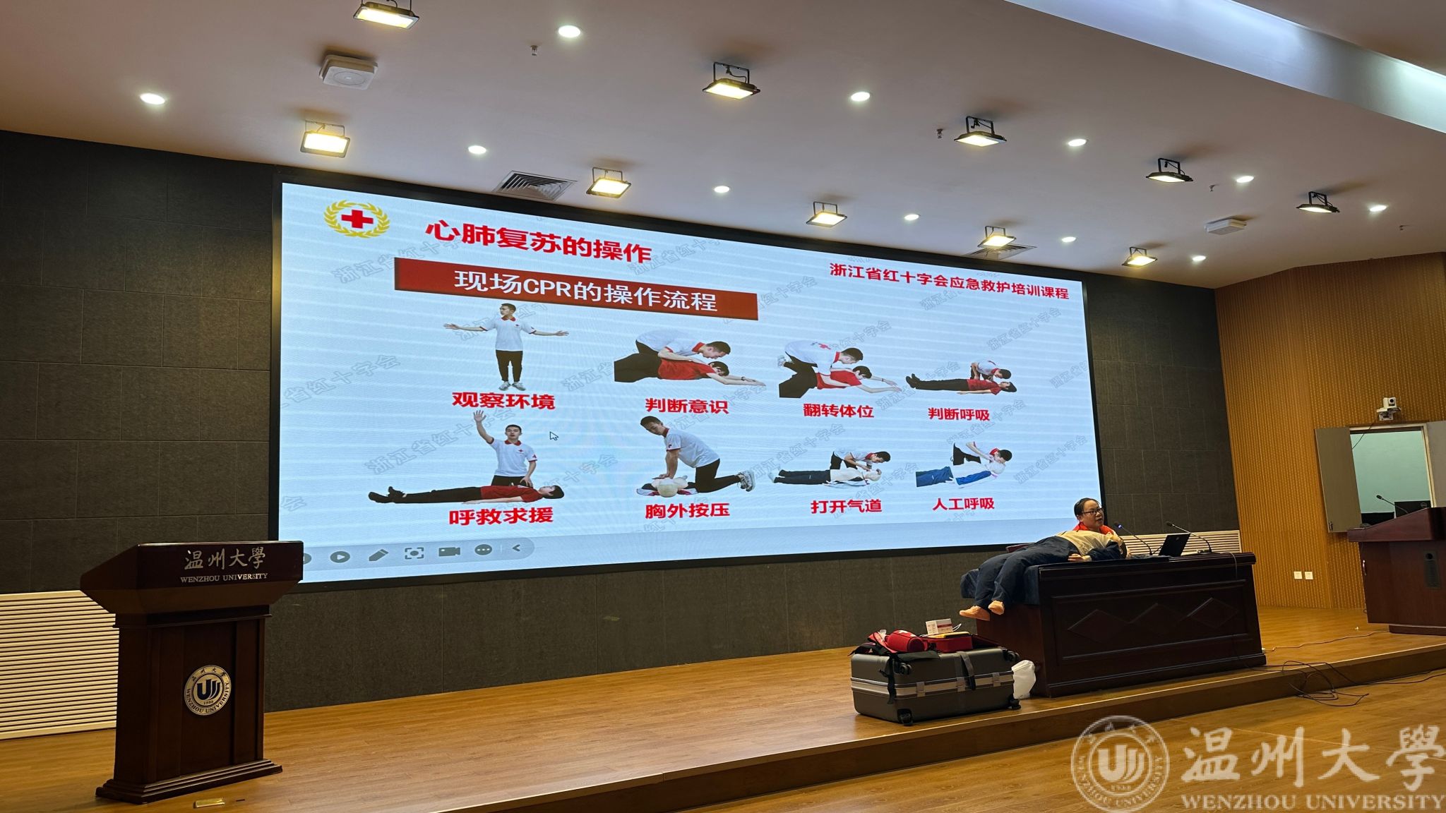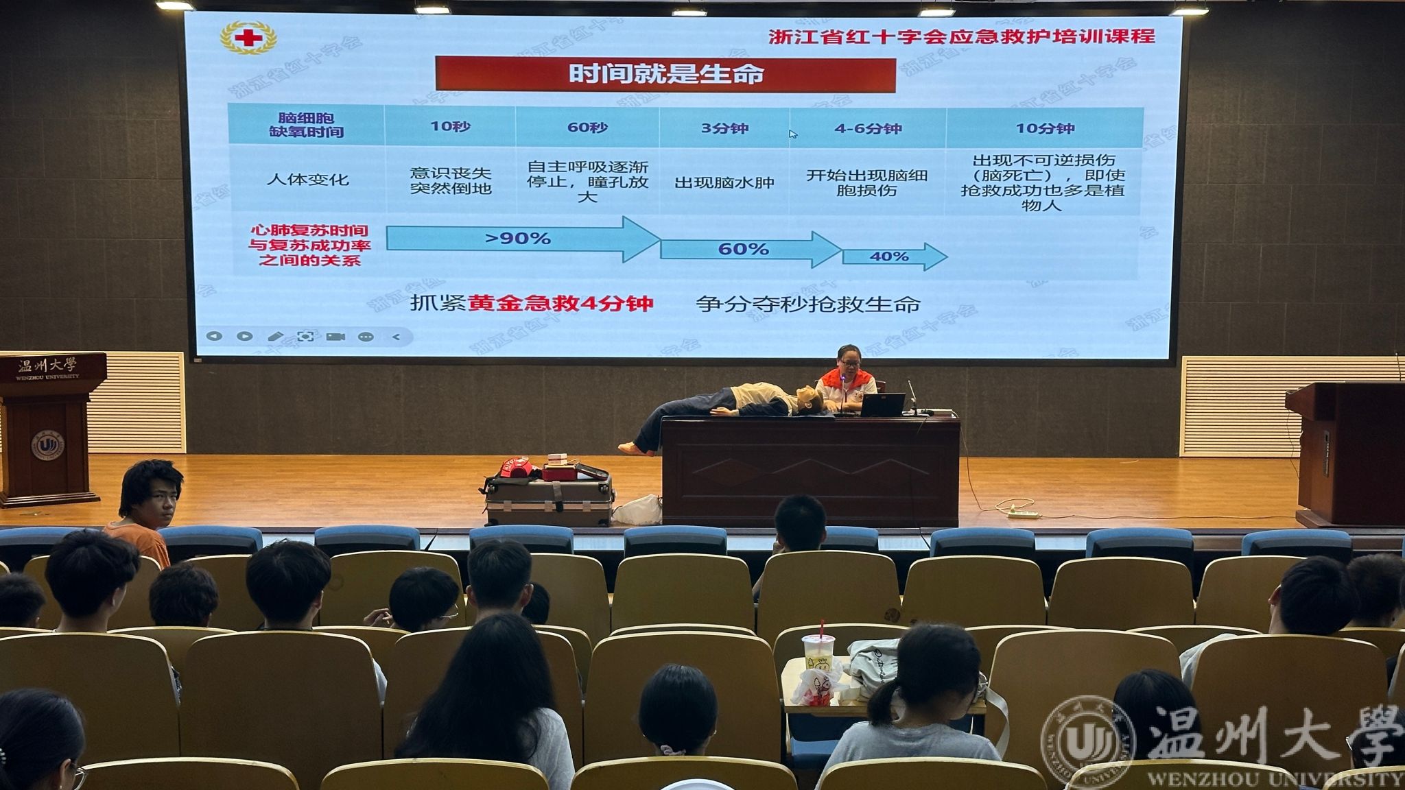 10月16日晚上,球探体育比分网 在岩松堂步青厅成功举办了一场以“大学生安全自救知识”为主题的讲座,本次讲座由温州大学医务室吴洁医生主讲,吸引了众多大学生前来聆听学习。讲座的内容贴合大学生实际,主要由两部分构成,一是现场CPR操作和AED的使用,二是气道异物梗阻的现场应急救援。