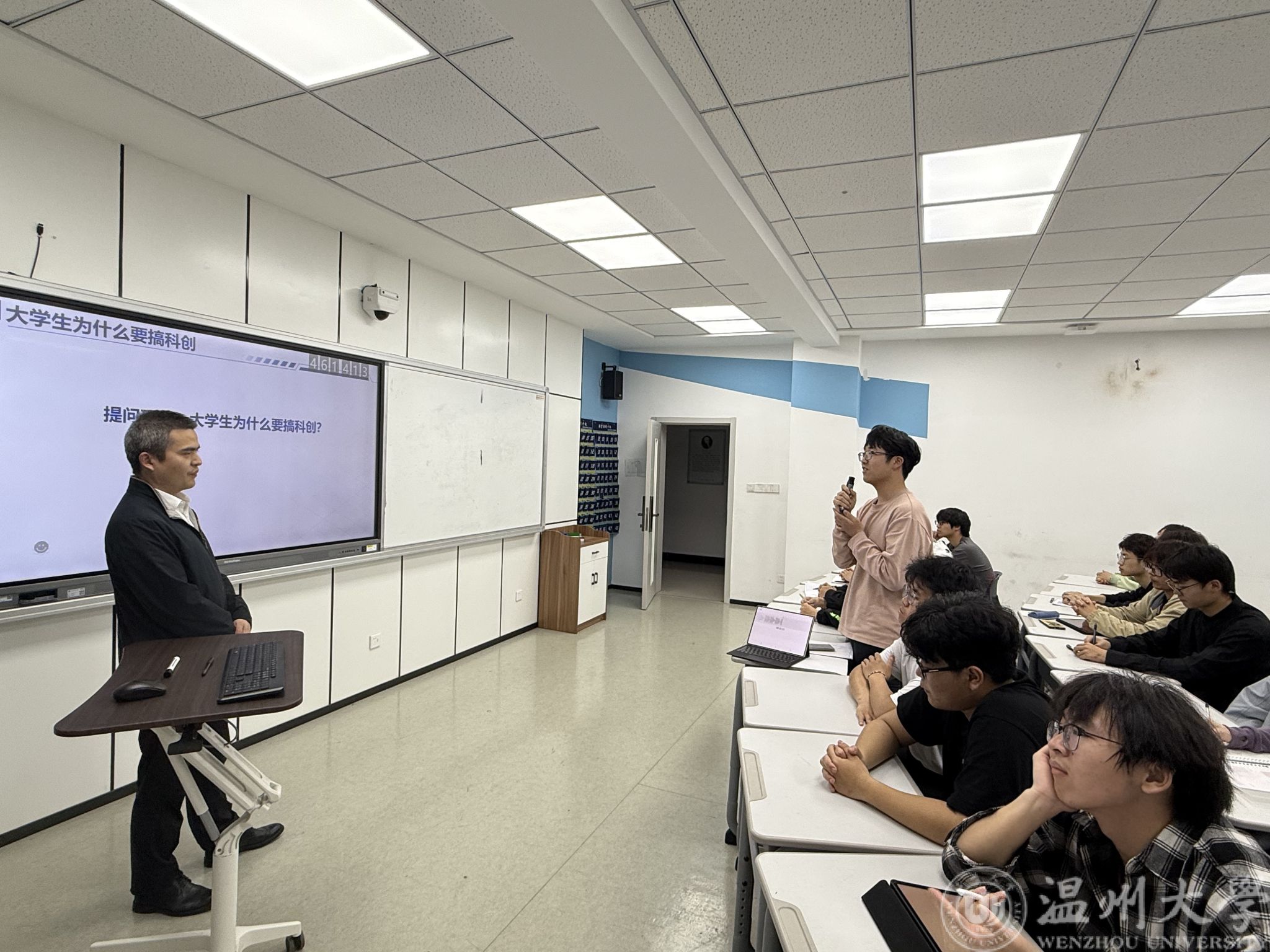 锚定价值航向,洞悉科创意义。舒院长在开场点明,大学生参与科创,不仅能满足探索未知的好奇心,投身热爱的研究,还能将知识运用到前沿科技领域,为社会创造价值,实现自我价值的升华。在提升综合能力层面,舒院长指出,科创竞赛和实践是培养人才的关键,通过参与科创,学生能有效提升解决实际问题的能力;科创还能磨炼意志品质,帮助学生树立不服输的精神,实现自我成长;此外,科创也能为学生搭建与顶尖学者交流的平台,拓宽了学生的视野,为未来发展创造更多可能,不仅如此,参与科创能够显著提升学生的综合业务素质,优化简历,为升学和就业增添竞争力。
