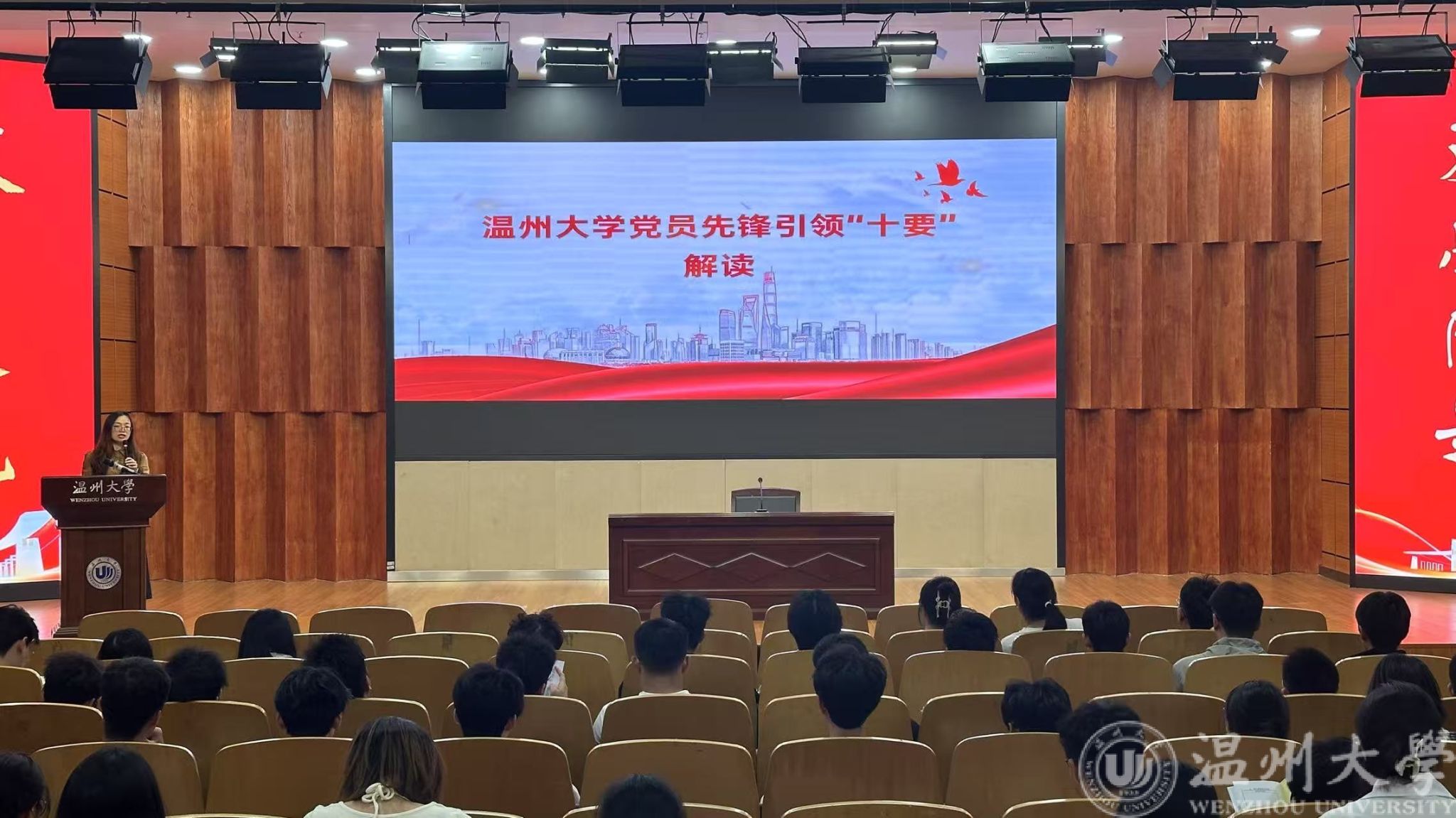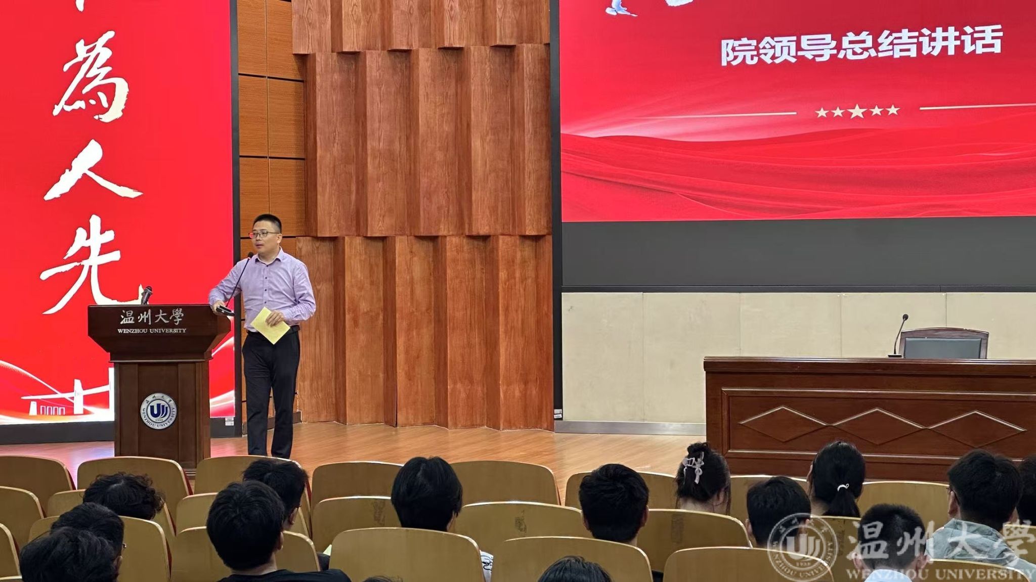 最后,球探足球 党委副书记翁浩做总结讲话。他指出,党员先锋引领“十要”是新时代高校党建工作的具体要求,全体党员、预备党员和积极分子要深刻领会其精神实质,将其融入到日常学习生活中。他强调,党员要发挥先锋模范作用,积极分子要以党员标准严格要求自己,共同努力,推动球探足球 党建工作高质量发展,为学校“三全育人”实践高地建设贡献力量。
