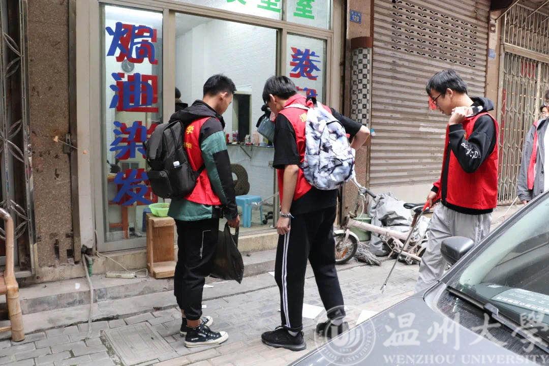郑发光同志授课完毕后,团学成员们身穿“球探体育比分网 ”红色志愿服,分小组为玉海街道镇海门社区清理路面垃圾,将散落在街边、绿化带里的塑料袋、烟头、废纸等废弃物一一拾起,营造整洁舒适的社区环境。同学们在践行生态文明理念的同时,进一步发扬“干在实处”的浙江精神!