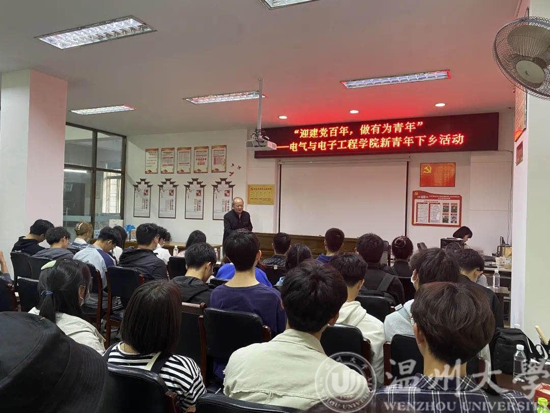 活动的第三站由瑞安玉海街道镇海门社区老党员——郑发光同志为团学成员们讲授党课。已有86岁高龄的郑发光同志带着乡音诉说着自己在部队中的入党经历,深知入党流程之严谨的团学成员们从他的口中知晓部队中的入党道路更是漫长而不易。这位已有六十多年党龄的老党员用自己朴实而炙热的话语,让我们切实感受到了他对党员身份深深的自豪以及对祖国满腔的热血,与此同时也进一步坚定了团学成员们入党的决心!
