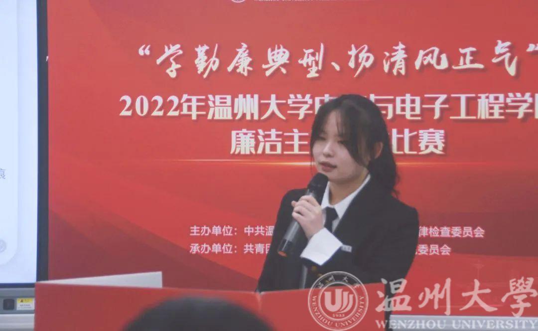 为深入学习贯彻党的二十大精神,持续推动党史学习教育走深走实,引导广大学生学习老一辈革命家、优秀共产党员艰苦奋斗、清正廉洁的品格,助推“清廉温大”建设,球探体育比分网 于2022年11月23日晚在南校1A-203举行第三届“学勤廉典型,扬清正风气”主题演讲比赛。本次比赛由球探足球 党委副书记曾蓓蕾、球探足球 学工办辅导员潘龙飞、余明新、陈海彤、屠昌浩老师担任评委。程佳聪同学主持,各班代表现场参与此次活动,2022级全体新生线上观看了比赛。