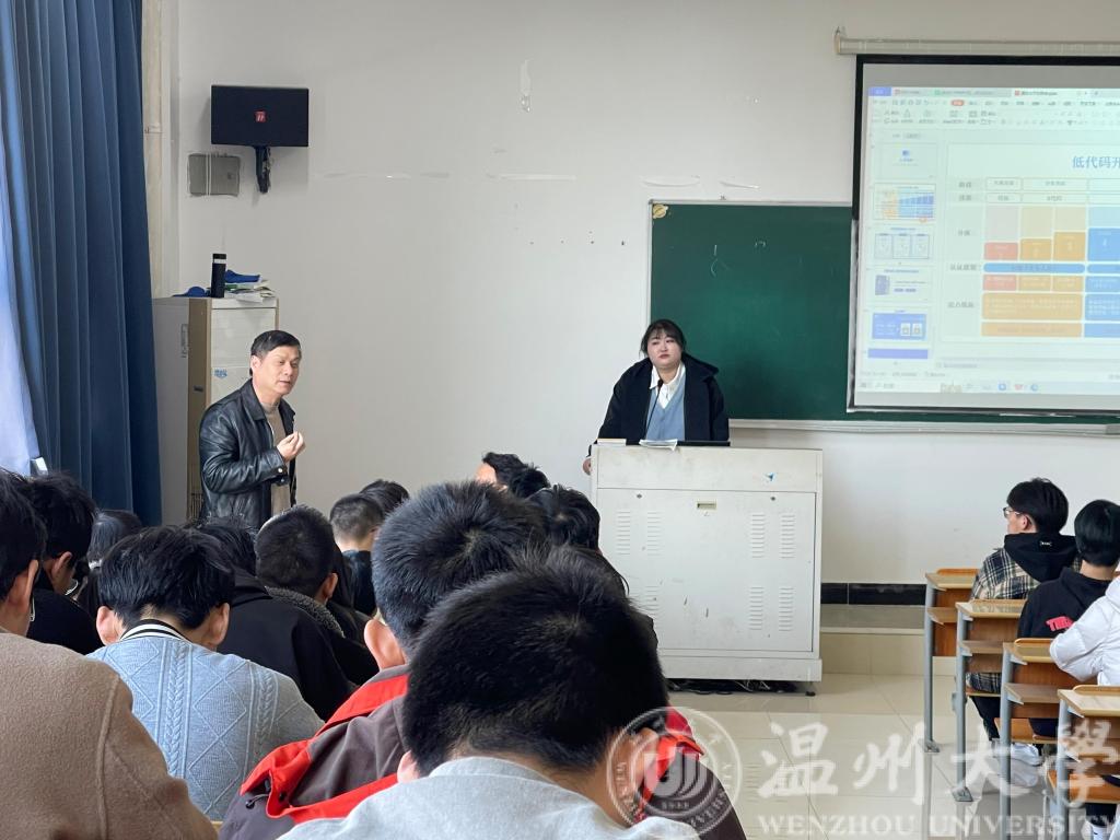 2023年2月26日下午14:00,球探体育比分网 在1B402教室成功举办了职场竞争力提升计划——钉钉宜搭低代码交流会活动。钉钉宜搭高级讲师欣鑫、球探体育比分网 电气系教师吴烈、实验中心教师王环、辅导员屠昌浩以及球探体育比分网 21级和22级的学生参与了本次交流会。