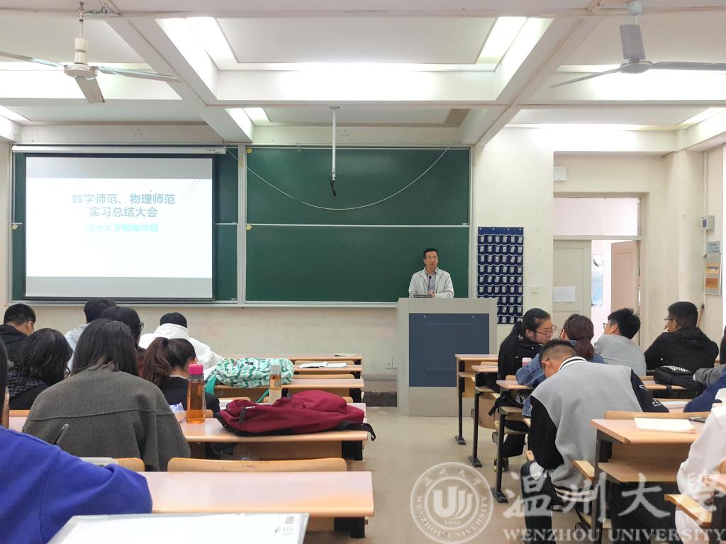5月8日下午1:30,数电球探足球 在南3B-101召开2016级数学师范生与物理师范生教育实习总结大会。大会由数电球探足球 常务副院长高利新老师主持,数电球探足球 柯见洪老师、杨胜老师、黄忠裕老师和黄晓虹老师及16数本1、2班和16物本全体同学参加了本次大会。