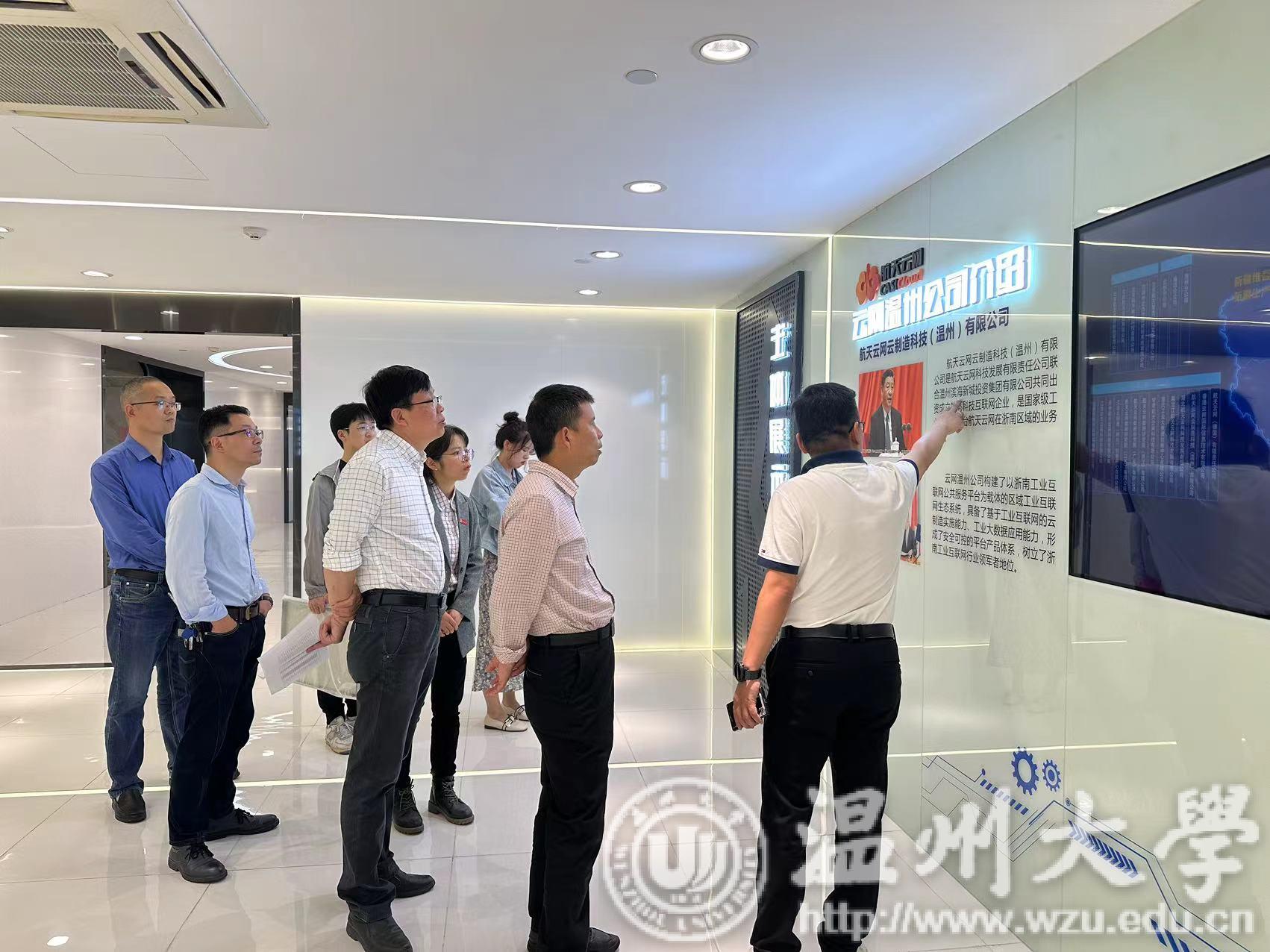 航天云网云制造科技(温州)有限公司书记、副总经理谭立新,副总经理黄勇达对球探体育比分网 一行来企考察交流、深化校企共建合作表示热烈欢迎,并带领球探体育比分网 人员进行公司参观,详细介绍公司的历史沿革及在相关领域取得的成绩。