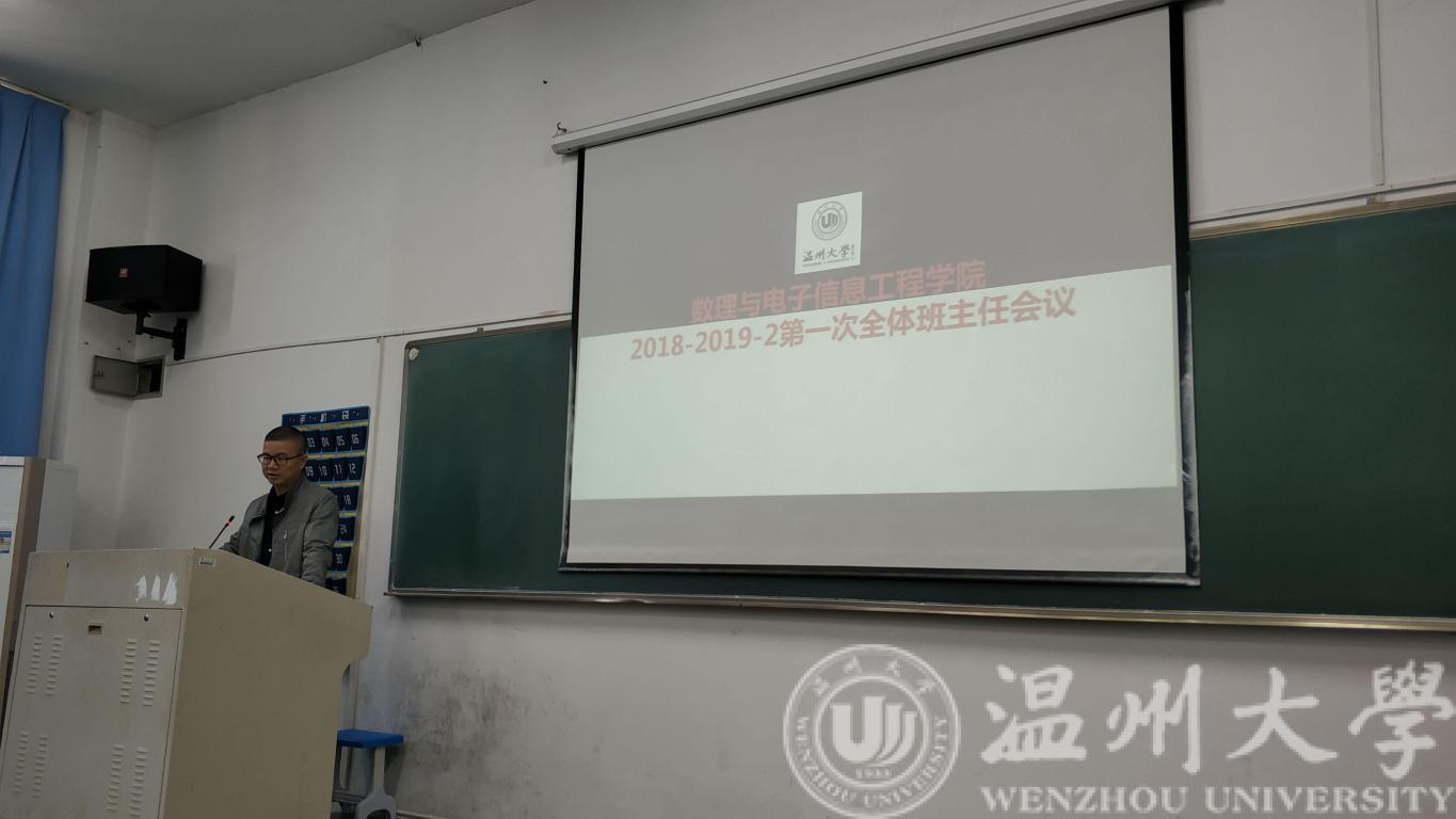 2019年3月13日下午,数电球探足球 于1B401召开了2018-2019学年第二学期全体班主任会议,参加本次会议的有数电球探足球 党委书记李方强、数电球探足球 本、硕全体班主任老师,球探足球 学生科全体辅导员老师。本次会议由李方强书记主持。