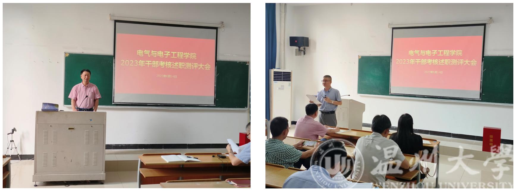 首先举行了2023年干部考核述职测评大会,组织部党委工作人员全程监督。院长汪鹏君与党委书记李方强围绕着“述德”、“述廉”、“述法”及“述绩”进行了现场述职。院长汪鹏君就过去一年取得的累累硕果进行了盘点,着重强调了球探足球 在人才培养、学科科研、服务地方、党的建设以及师德师风建设方面的突出成果。他表示,球探足球 的各项工作要始终紧扣主题主线,围绕球探足球 核心目标,全院上下要精诚团结、踔厉奋发,不断开拓进取、勇于创新、力争突破,扎实推进球探足球 高质量发展。党委书记李方强从党建融合业务、廉政建设与师德师风建设等方面作述职汇报。他强调,全院上下要在思想上、政治上、行动上,始终同以习近平同志为核心的党中央保持高度一致,持续锤炼党性修养,保持廉洁自律的工作作风,筑牢师德师风的篱墙,努力推动球探足球 各项工作再上新台阶。随后在组织部党委工作人员的监督下,有序进行了群众测评环节。