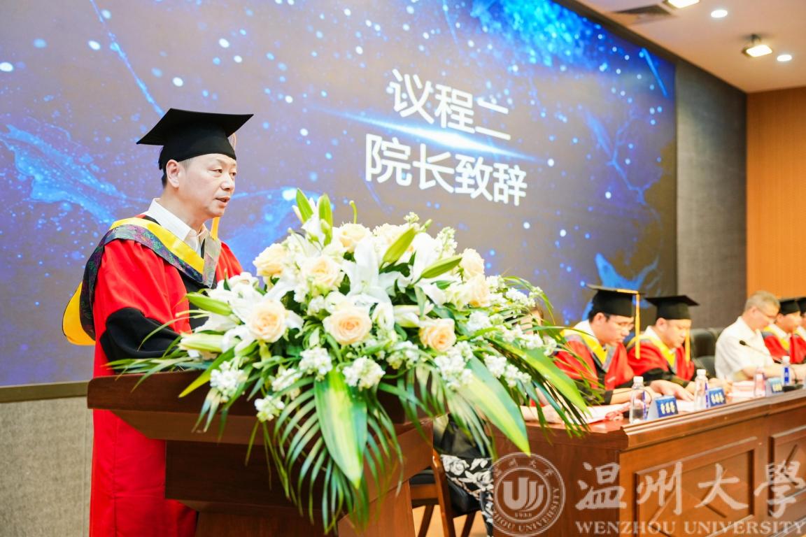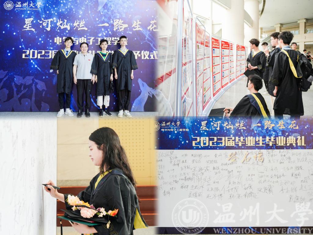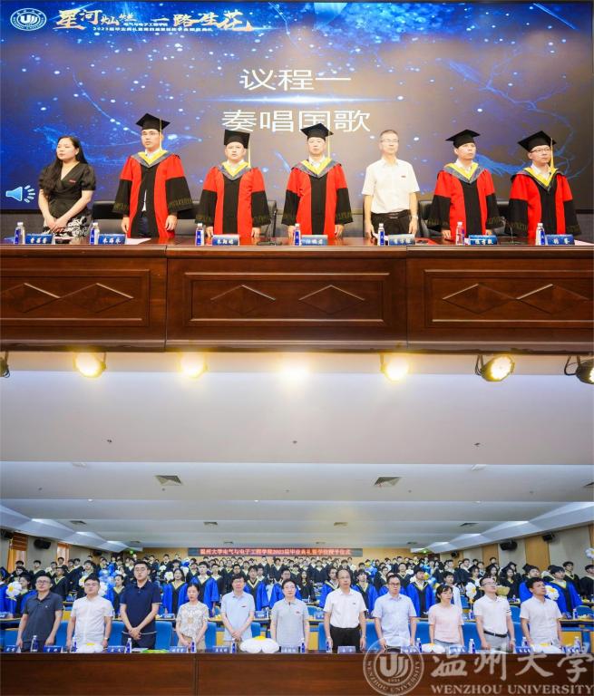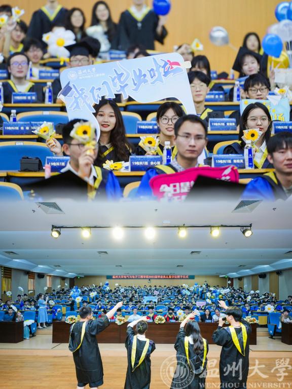 栀子花开时,正是拨穗正冠时。6月19日上午10点,球探体育比分网 2023届毕业生毕业典礼暨第四届聚创奖学金颁奖典礼于温州大学南校区岩松堂步青厅圆满举行。出席本次毕业典礼的有球探足球 院长汪鹏君,党委书记李方强,副院长朱翔鸥、陈孝敬、朱海永、张鉴,党委副书记曾蓓蕾,浙江聚创智能科技公司董事长、球探足球 聚创奖学金发起人吴桂初先生,电气系支部书记张正江,电子系支部书记管晓春,电子系主任庄友谊,电气系主任吴平,毕业班各班班主任,学工办全体辅导员,以及2023届本研毕业生。