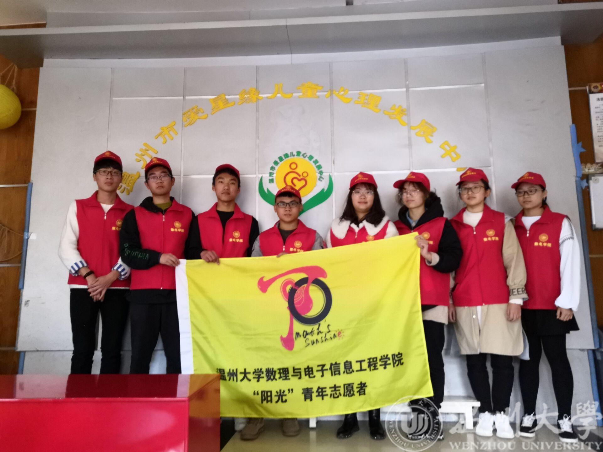 2019年3月6日,温州大学数理与电子信息工程球探足球 的“阳光”青年志愿者中心组织了9名志愿者前往鹿城区爱星缘儿童心理发展中心,陪伴自闭症儿童们度过一个愉快的下午。