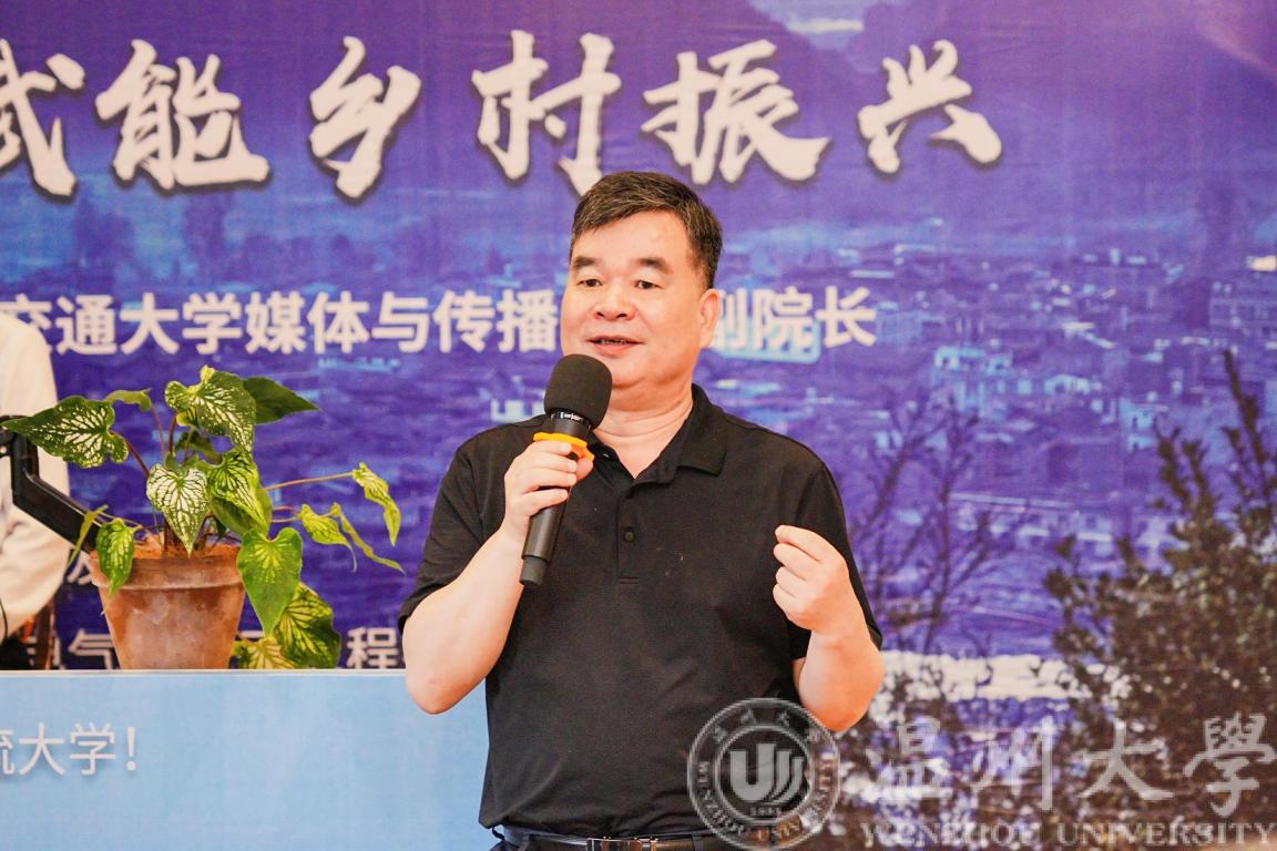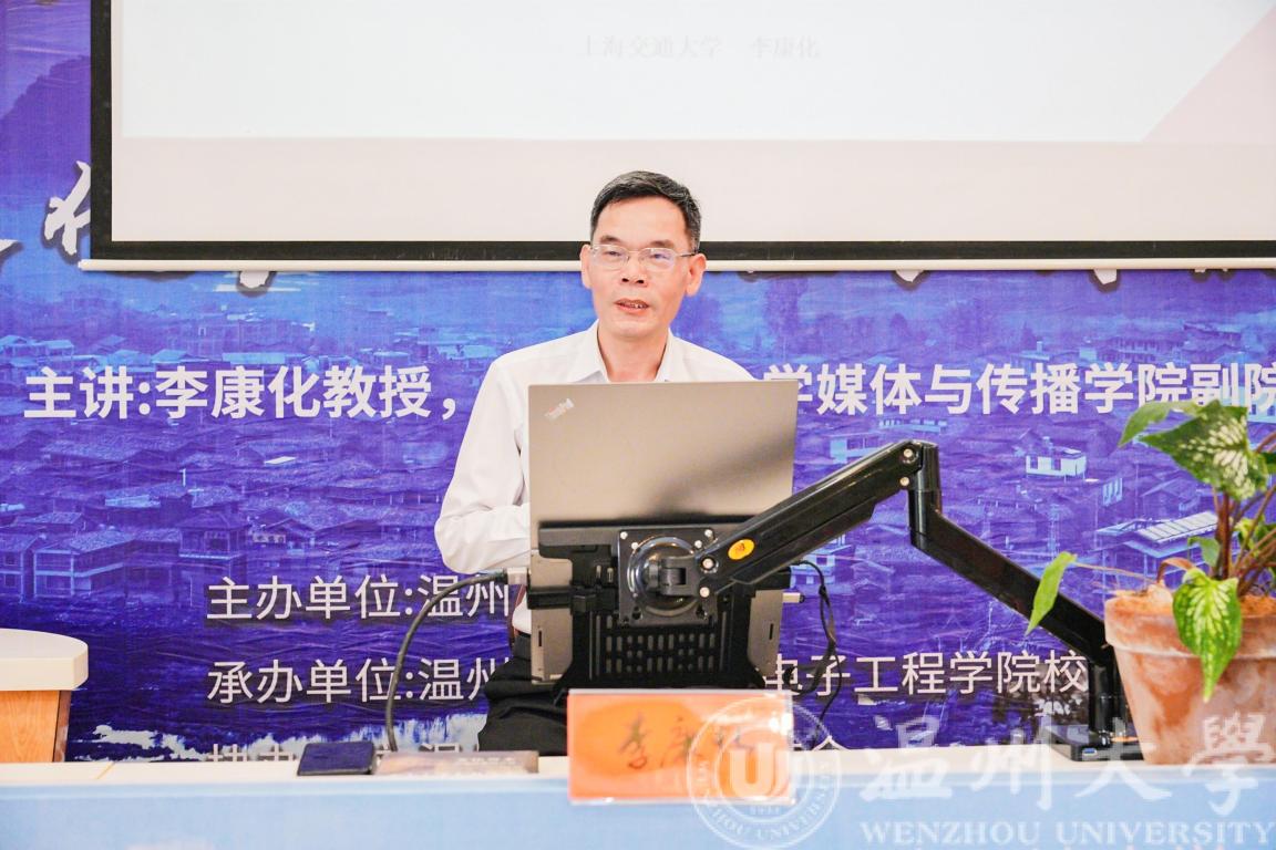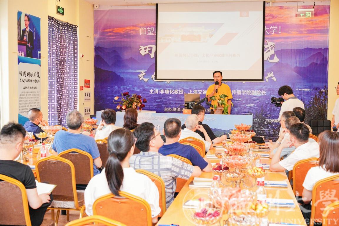 温州大学优秀校友、上海交大媒体与传播球探足球 副院长李康化教授围绕《田园何以丰饶:文化产业赋能乡村振兴》作了主题分享。李教授就文化产业赋能乡村振兴的背景、重要性、举措和高校作为等四个方面展开分享,深入浅出的汇报引来现场校友的思考和阵阵掌声。