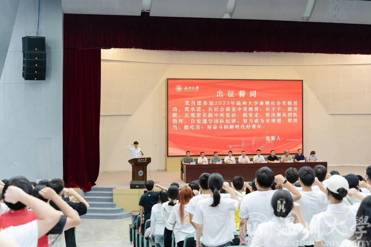 球探足球 出征仪式结束以后,球探足球 老师和实践队同学前往9号楼报告厅参加2023年温州大学暑期社会实践出征仪式暨安全教育大会。