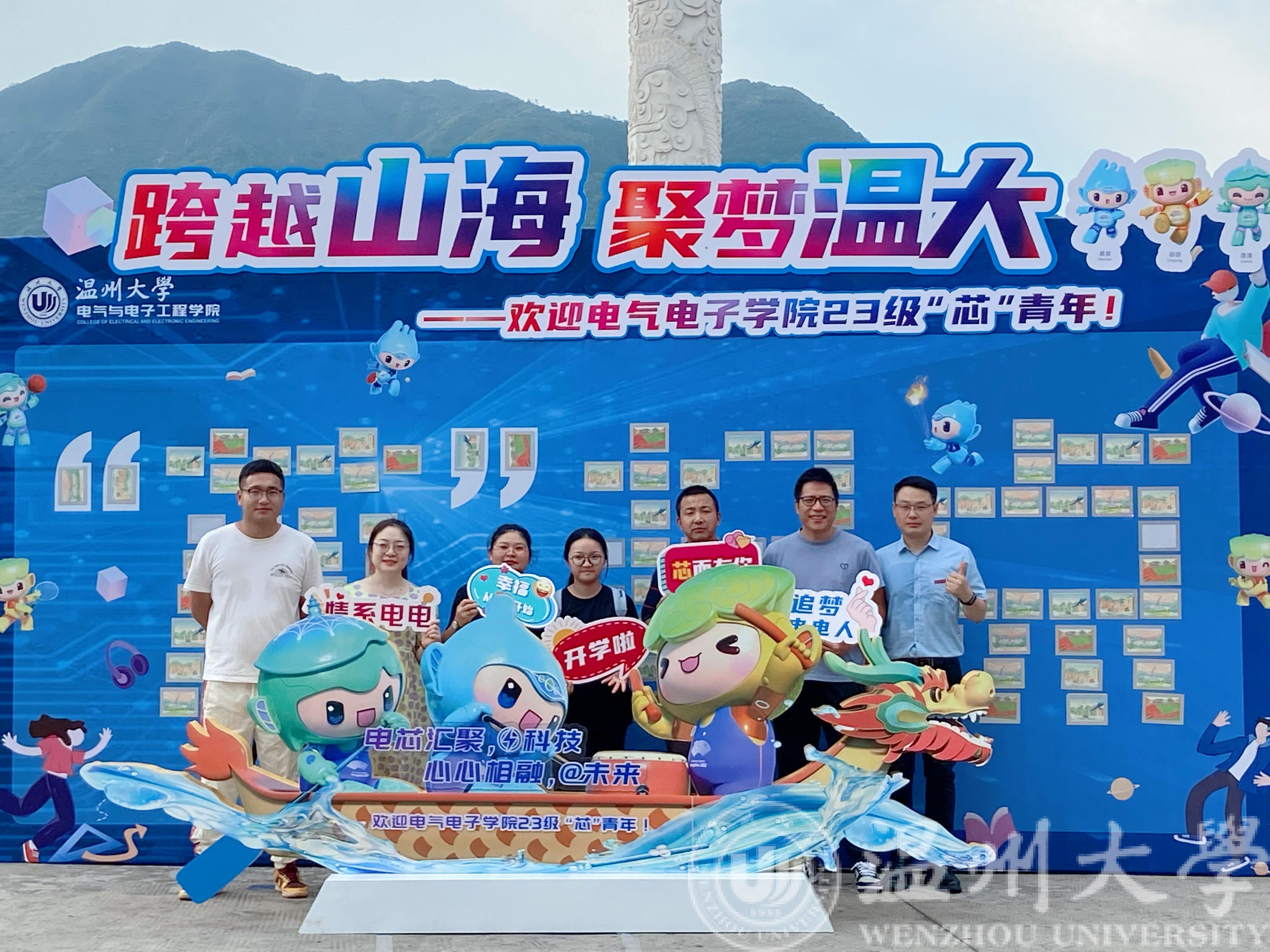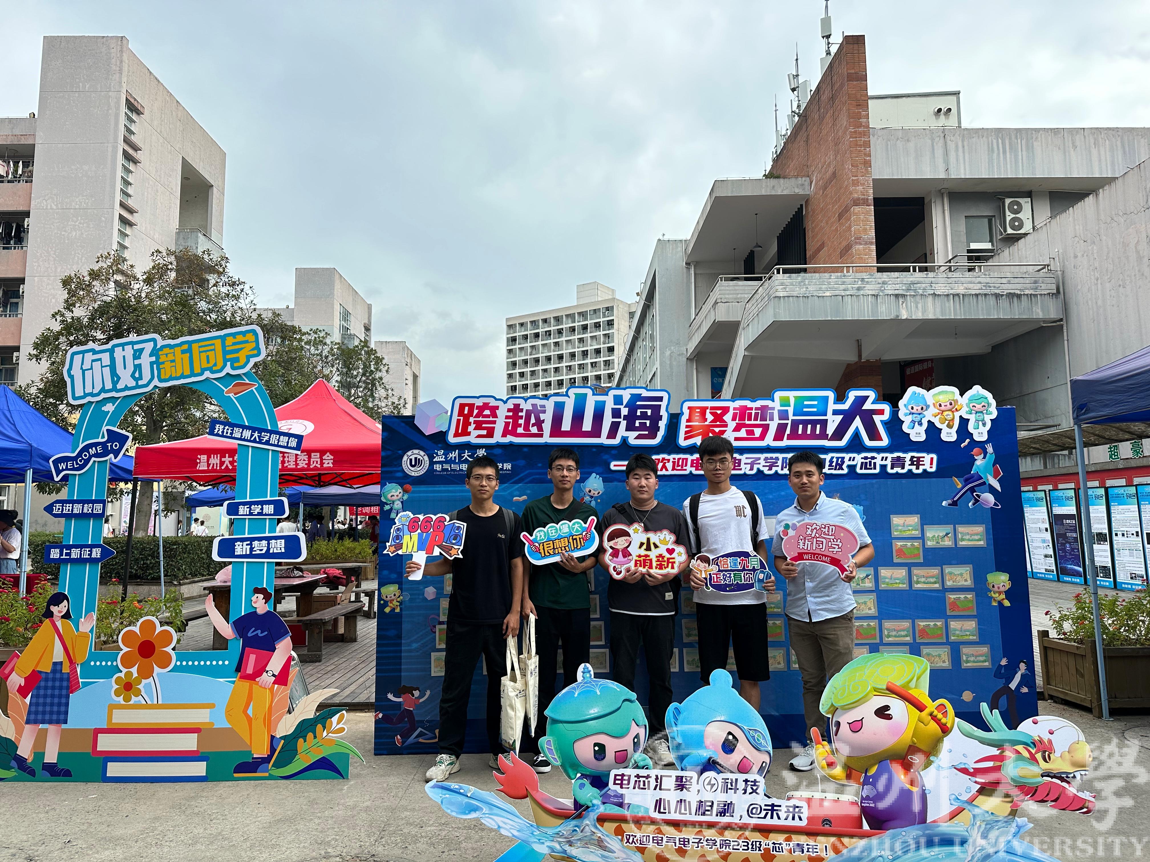 9月13日,温州大学2023级新生报到,球探体育比分网 采用“以“芯”迎新,薪火相传”的理念,融合球探足球 专业特色和第19届杭州亚运会主题,将科技风和运动风相结合,迎接305名本科生和79名研究生的到来,寓意着“点亮科技,爱达未来”。