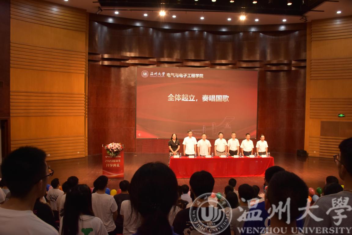 会上举行了佩戴校徽仪式,戴上校徽,就是有了一个共同的名字——温大人,正式开启崭新的大学生活,成为一位光荣的温大学子。随后,全体起立,齐唱校歌。“东海水,雁荡山,我温大精神,浩浩荡荡!”学习校歌,感受校歌内涵,感受温大“求学问是,敢为人先”的力量。