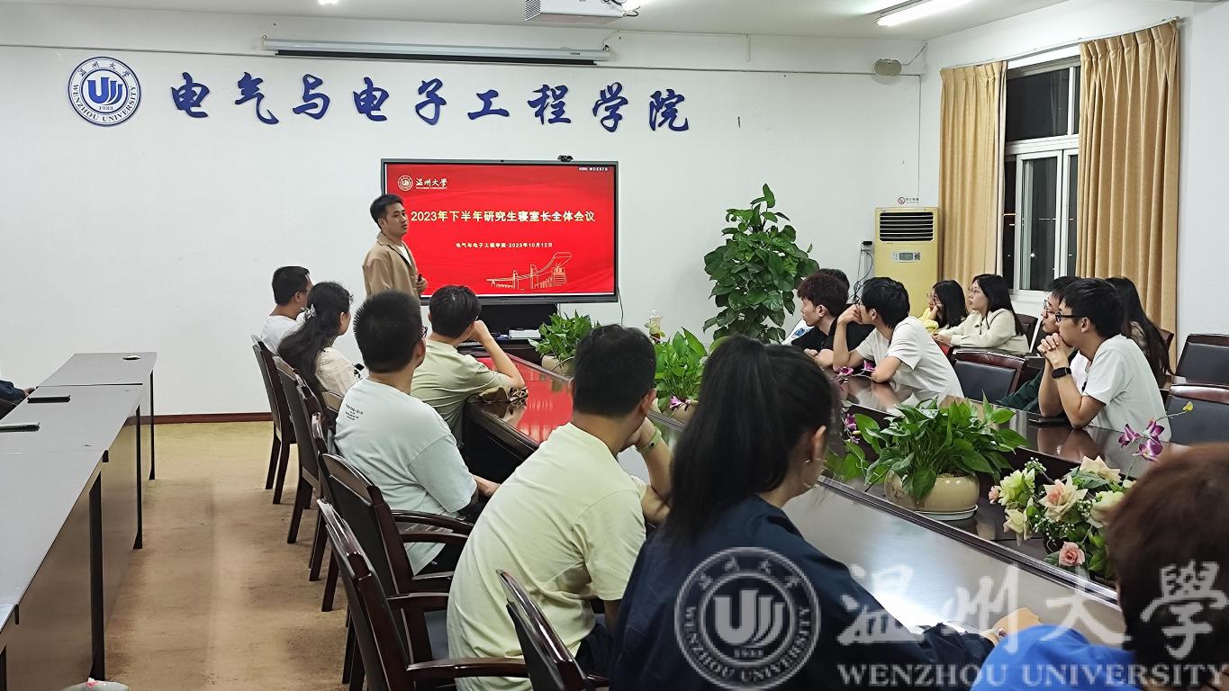 2023年10月12日晚19:00,球探体育比分网 全体研究生寝室长会议在1A502召开。本次会议由研究生辅导员余明新主持,强调了研究生寝室在开学以来所出现的违规电器和私拉电线的违规情况。值得表扬的是违规电器在球探体育比分网 研究生寝室基本不存在,但是私拉电线的情况在开学以来屡次出现。私拉电线存在一定的风险,危及到我们学生在寝室内的人身安全,身为电气电子专业的学生更应该清楚用电的安全性。余老师对开学以来出现的私拉电线的具体情况向全体寝室长一一介绍,希望各寝室长回去以后逐一排查寝室所存在的违规电器、私拉电线以及其他存在的安全隐患,尽早消除寝室存在的安全隐患,保障同学们在学校的安全学习生活。