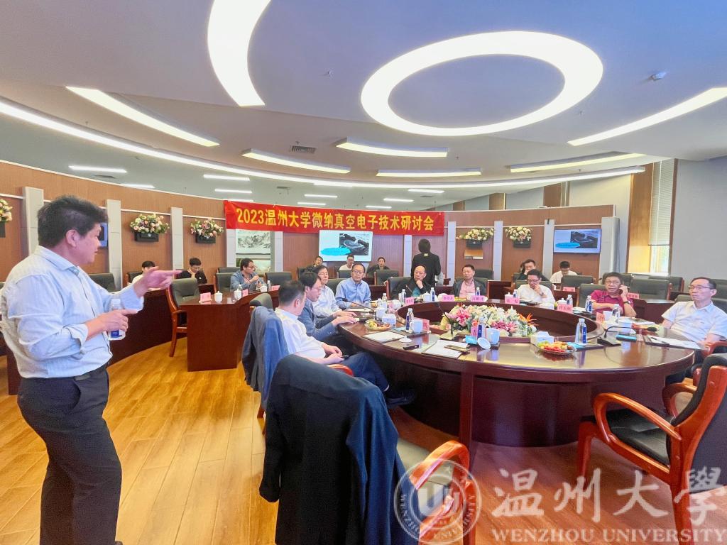 由浙江省光电功能器件与数字化检测国际科技合作基地和温州市微纳光电器件重点实验室联合举办的“2023年温州大学微纳真空电子技术研讨会”于2023年10月11-12日在我校岩松堂展示厅召开。来自国内微纳真空电子技术等领域的10多名著名专家参加了研讨会。与会的著名专家包括中国工程院院士、航天510所李得天研究员,国家杰出青年基金获得者、长江特聘教授、电子科大宫玉彬教授,微波电真空器件国家级重点实验室副主任、中电科第12研究所冯进军研究员,国家杰出青年基金获得者、合肥物质科学研究院孟国文教授,国家“百千万人才”、温州大学汪鹏君教授,国家重大人才工程人选、国科大温研院胡秋红教授,国家杰出青年基金获得者、东北师大汤庆鑫教授,国家优秀青年基金获得者、电子科大邹权教授,杭州凯龙医疗器械公司董事长丁凯先生等。我校相关专业学科教师与研究生参加了研讨活动。研讨会由浙江省光电功能器件与数字化检测国际科技合作基地、温州市微纳光电器件重点实验室主任董长昆教授主持。