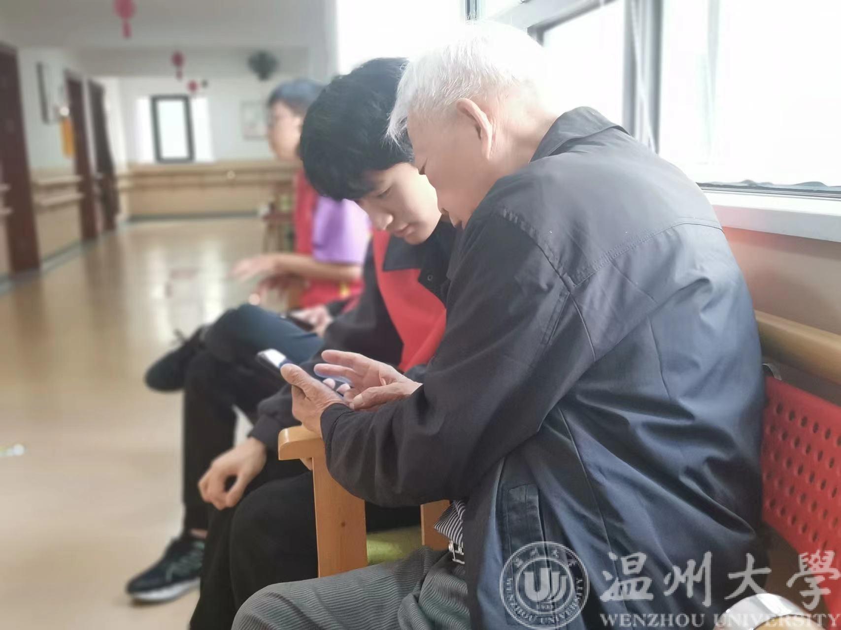 同时,也有同学手把手教老人使用智能机,帮助他们尽力追赶时代的潮流。