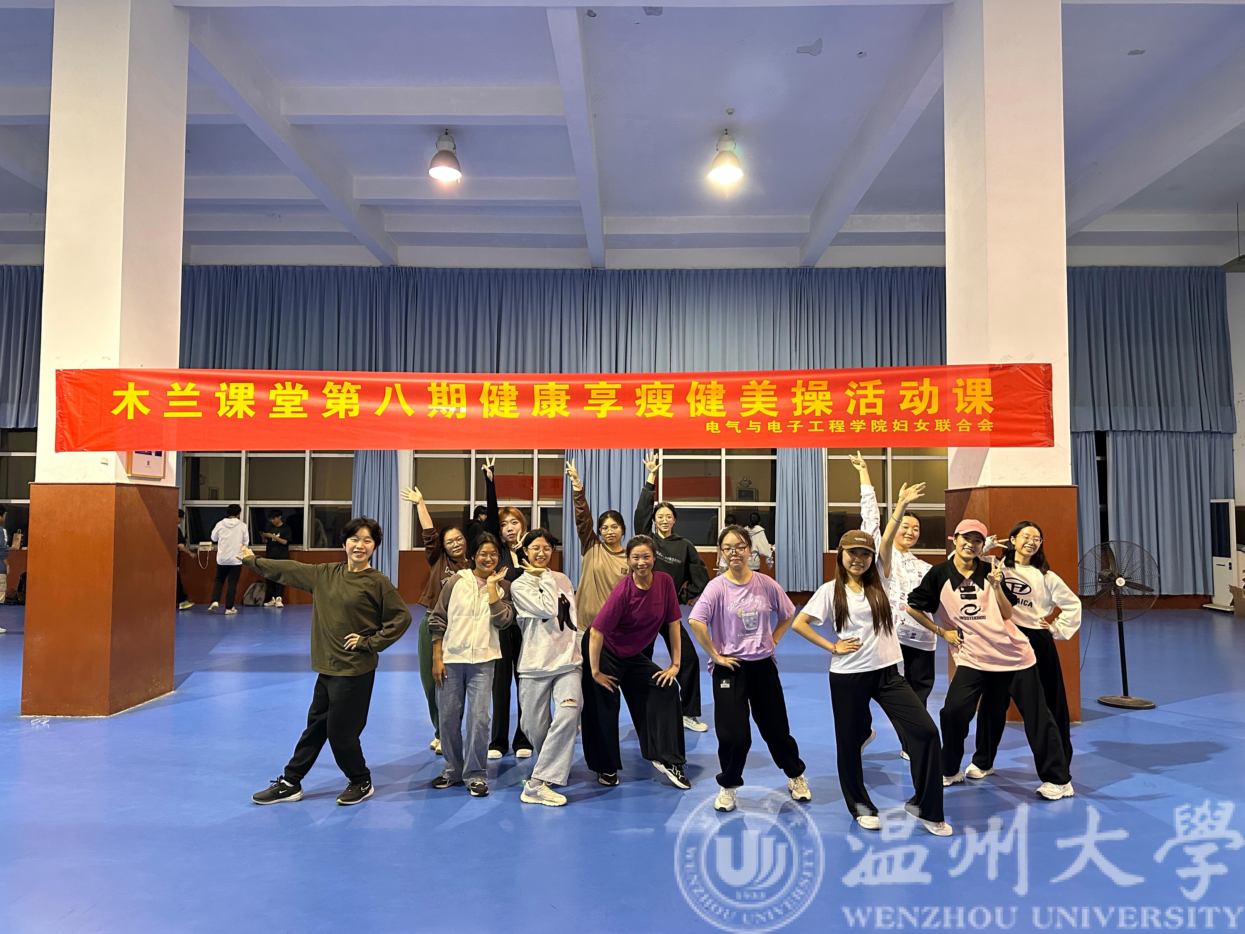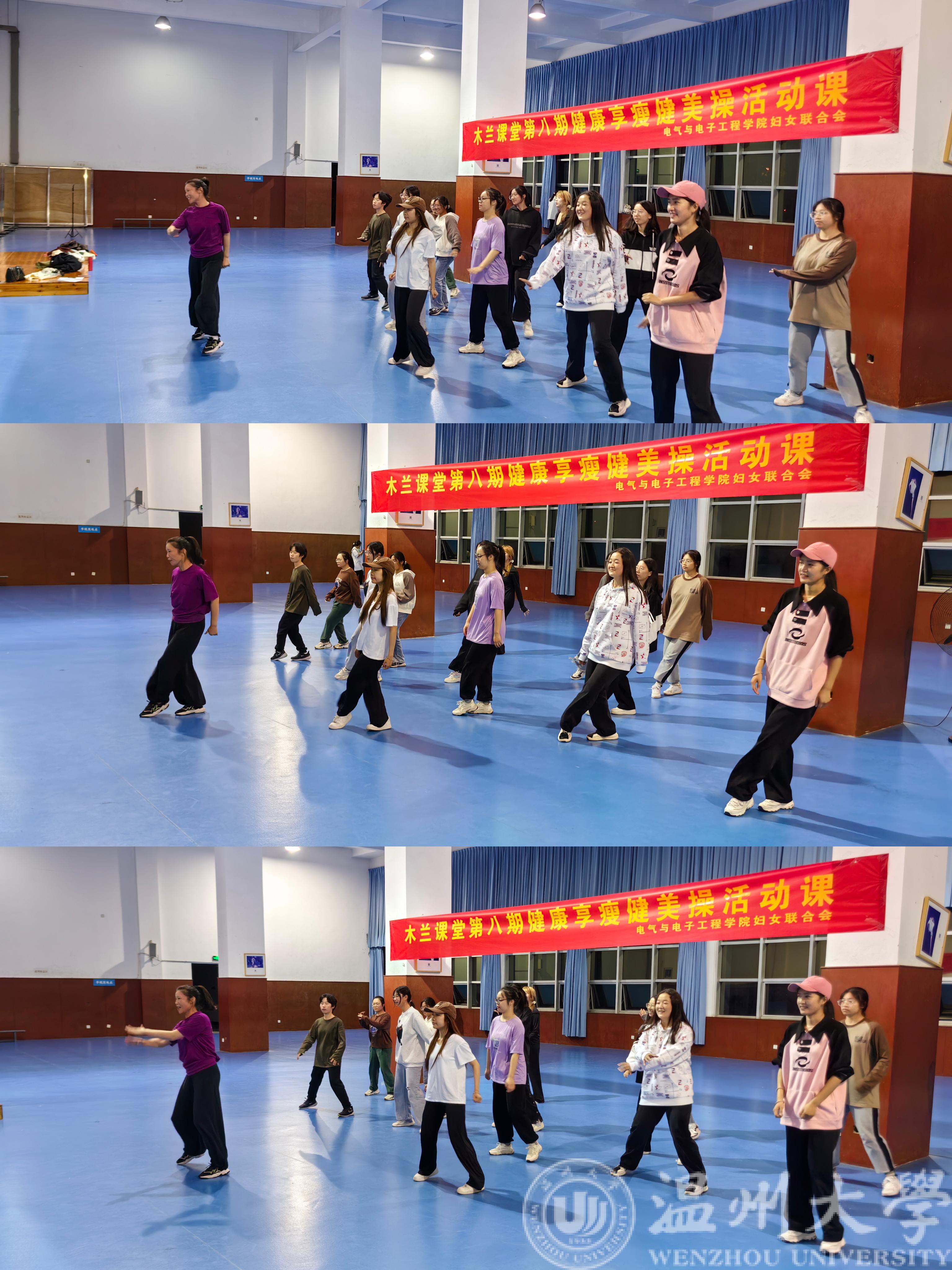 温大妇联木兰课堂第八期“健康享瘦健美操活动课”于11月10日晚上六点三十分在南校体育馆二楼健身房展开,本次活动由球探体育比分网 妇联承办。全校近40名同学报名参加了本次活动。