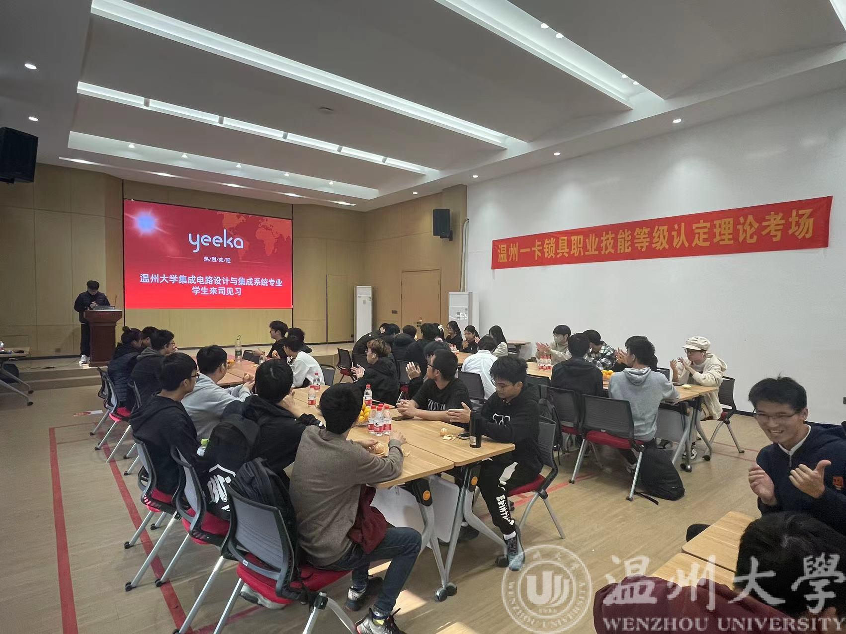 2023年11月24日,球探体育比分网 22级集成电路设计与集成系统专业学生在电子系党支部书记管晓春和班主任叶浩两位老师的带领下参加了专业见习活动,分别参观了温州一卡锁具科技有限公司和温州大学智能锁具研究院。