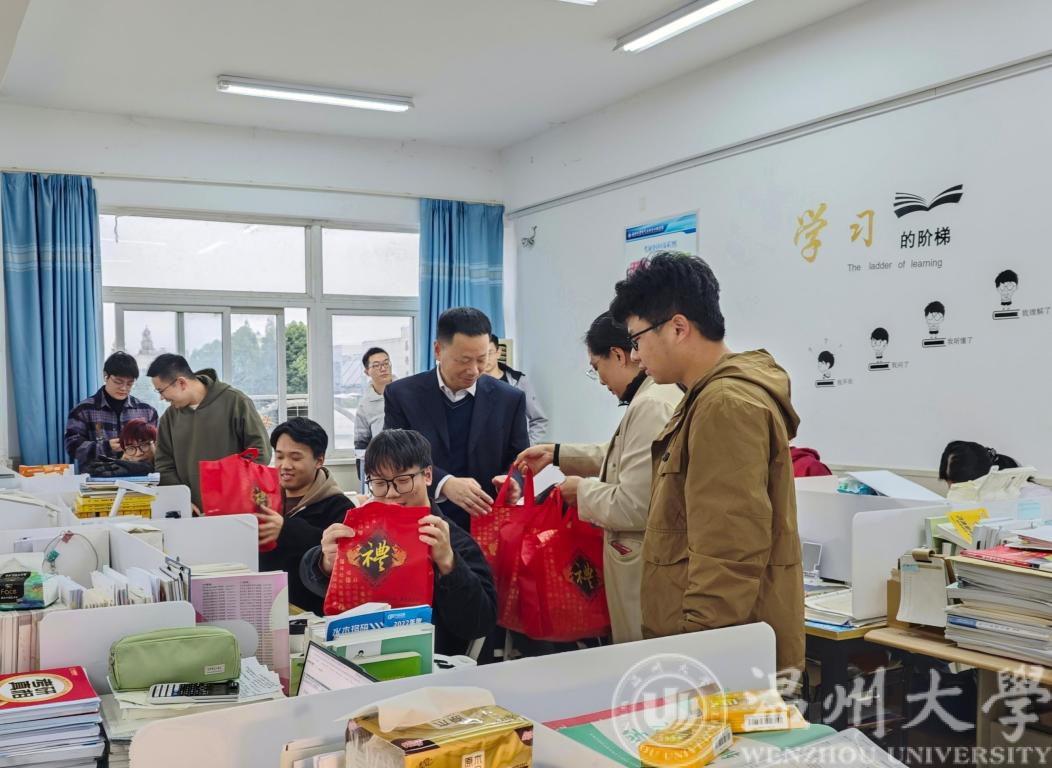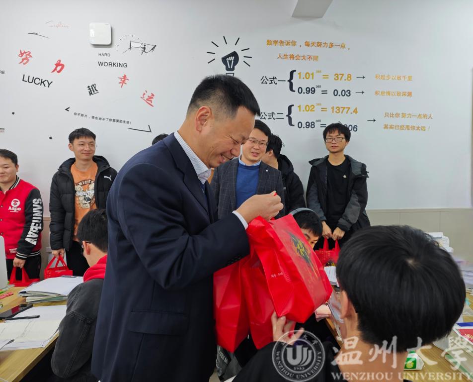 11月30日下午14:00,球探足球 院长汪鹏君、党委书记李方强、党委副书记曾蓓蕾及学工办辅导员们来到球探足球 318考研自习室,为正在备考的考研学子送上球探足球 精心准备的“冲刺大礼包”。
