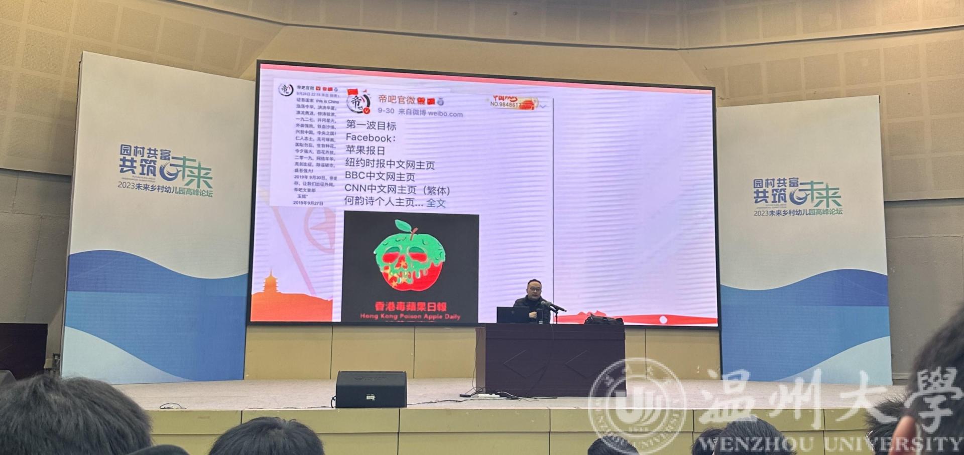 2023年12月3日晚上6:30,球探体育比分网 2023级与2022级同学在9号楼报告厅同上主题为《知网、用网、护网——构建清朗网络空间,做文明时代新人》的形势与政策课,课程由浙江省高校网络教育名师,浙江省青年讲师团讲师、温州大学团委副书记丁强老师授课。丁老师就知网方面从网络的本质、互联网的历史脉络角度讲述了网络对我们的重要性,并提出如今网络世界存在的各种问题。他点明,营造一个风清气正的网络空间已经迫在眉睫。最后,老师强调,互联网是中华民族伟大复兴的历史机遇,我们应该遵守互联网信息服务管理“七条底线”和“九不准”,自觉维护网络秩序,遵守法律法规,绝不损害国家利益,共同构建清朗网络空间,做文明时代新人。