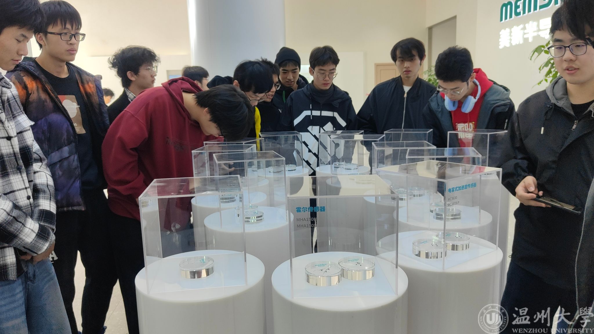 之后,同学们到达美新半导体进行参观。美新半导体是全球领先的惯性MEMS传感器供应商, 其主要业务是提供从MEMS传感芯片、软件算法和应用方案的一站式解决方案。在这里,同学们看到了MEMS芯片的晶圆以及成品的芯片,了解到了MEMS芯片的先进工艺,并参观了企业的芯片生产线。