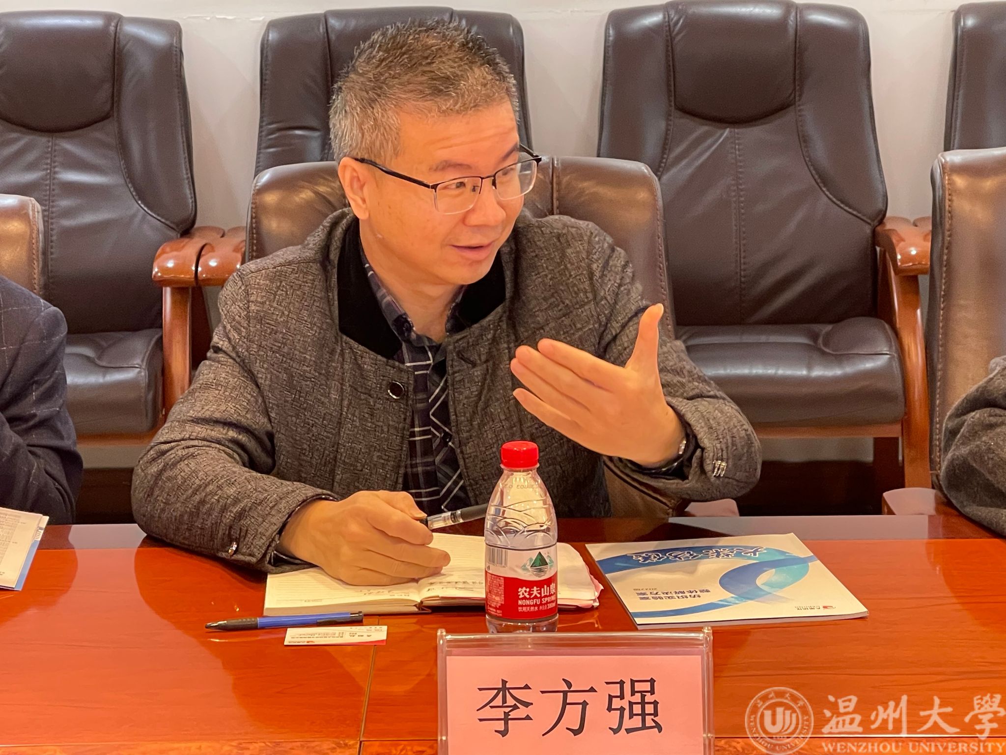 座谈会上,董事长吴昭彪对李方强等一行的到来表示热烈欢迎,并详细介绍了大荣纺仪的基本情况,表达了希望与温州大学进行深度合作的意愿。