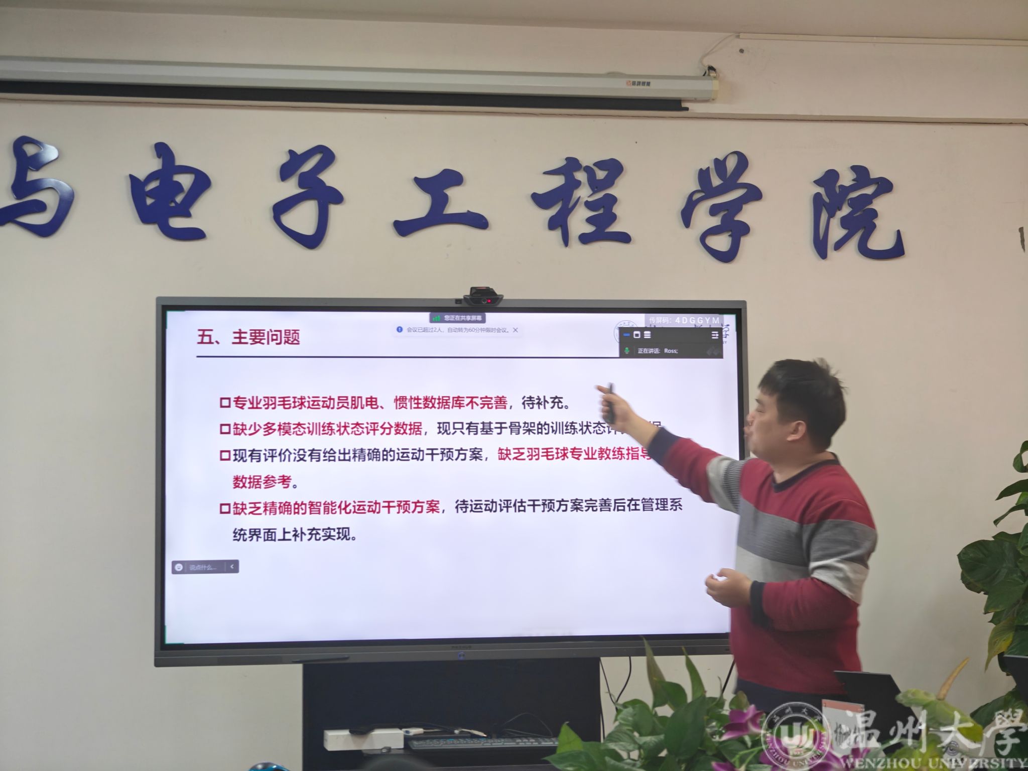 随后,王小航教授分享了在人工智能应用方面的最新研究成果和未来发展方向。杨旭升副教授作了关于浙江省“领雁”研发攻关计划项目“智能化精准运动能力检测与评估系统研制—竞技运动的智能融合检测和评估系统”的阶段性研究成果的报告。与会科研骨干和专家对羽毛球数据集采集、运动相关的预测算法的实施路径等相关议题进行了热烈的交流,也为球探体育比分网