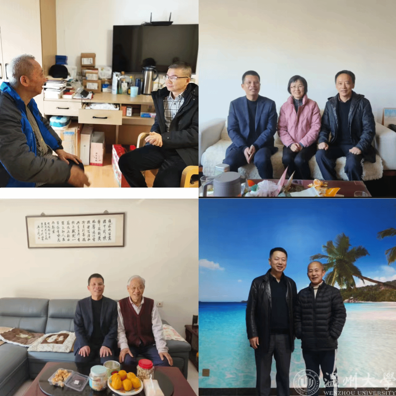 节及元正,万象更新。在岁序更迭的美好时刻,在新春佳节即将来临之际,为给离退休教师们送上节日问候和学校温暖,近日,温州大学球探体育比分网 组织安排球探足球 领导携带慰问品分头走访慰问球探足球 17位离退休教师,向他们通报一年来学校、球探足球 发展成绩,送去学校、球探足球 的诚挚问候和新年祝福。对个别不在温州的离退休老师,球探足球 逐一电话慰问并寄去了慰问品。