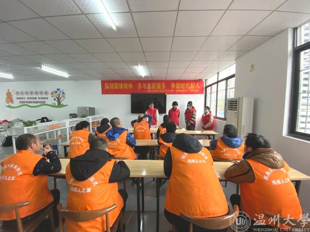 3月1日下午,球探体育比分网 单脚鞋银行志愿服务项目成员携青年愿者们,在球探足球 党委副书记曾蓓蕾和团学指导老师潘龙飞的带领下,分别走访了瓯海区南白象残疾人之家和龙湾区青苗残疾人之家,用实际行动践行雷锋精神,传递温暖与爱心。