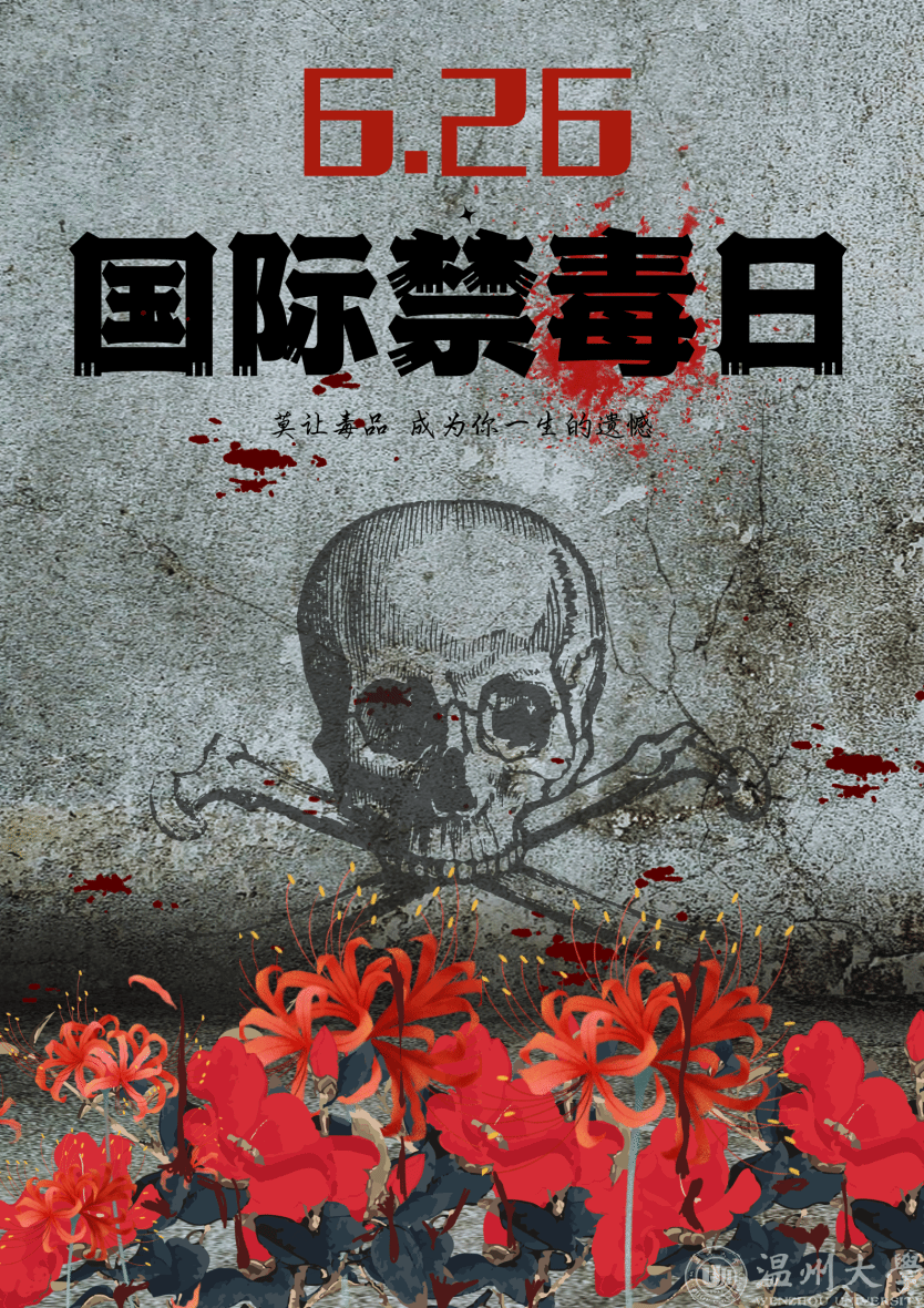 (生命之刺——23电科1班马浩。海报的设计通过这些符号和图案的有力组合,传达了一个清晰的信息:毒品危险,带来的是破坏和死亡,提醒人们远离毒品。)