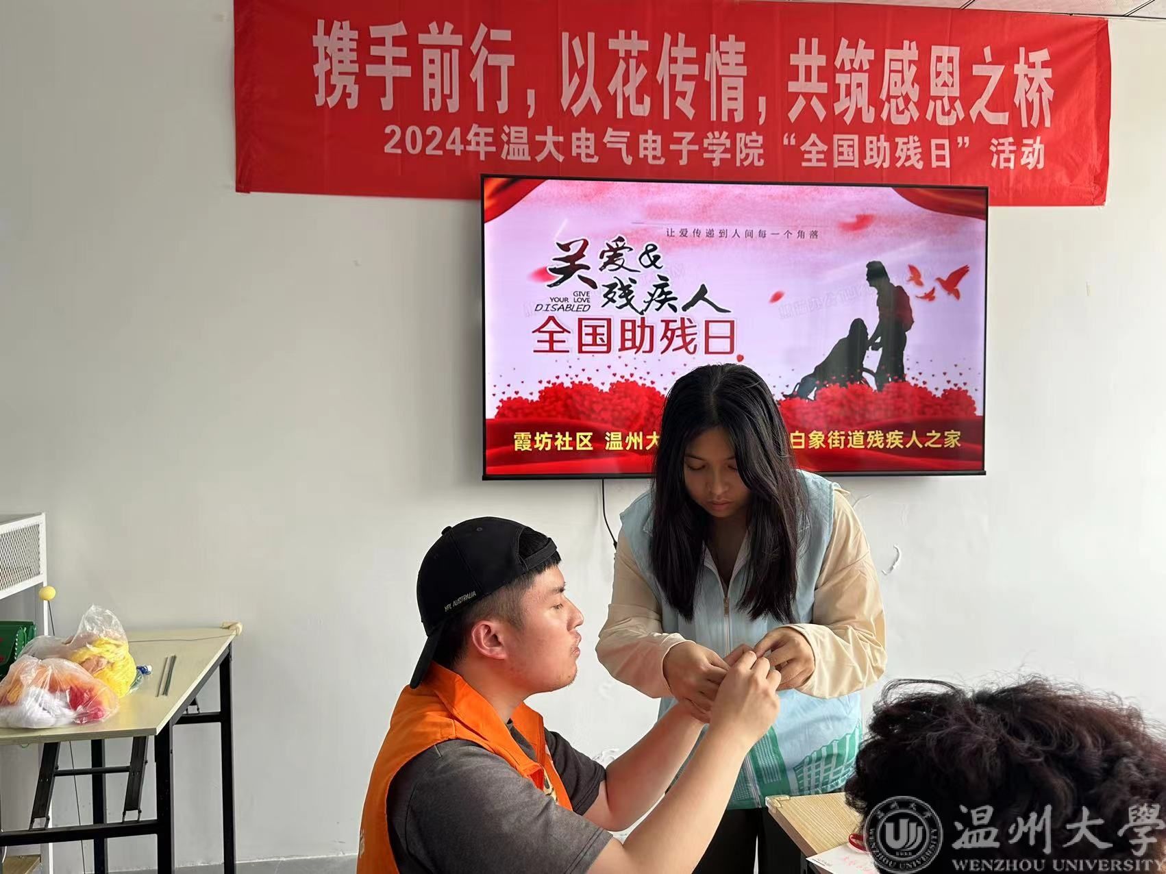 春深四月去,夏来五月新。在这个绚丽多彩的初夏时节,我们迎来了第34个“全国助残日”。为了积极响应国家对残疾人的关怀和支持,温州大学单脚鞋银行志愿服务项目的成员们和球探体育比分网 的志愿者们来到霞坊社区残联之家,一同开展“携手前行,以花传情,共筑感恩之桥”全国助残日活动。