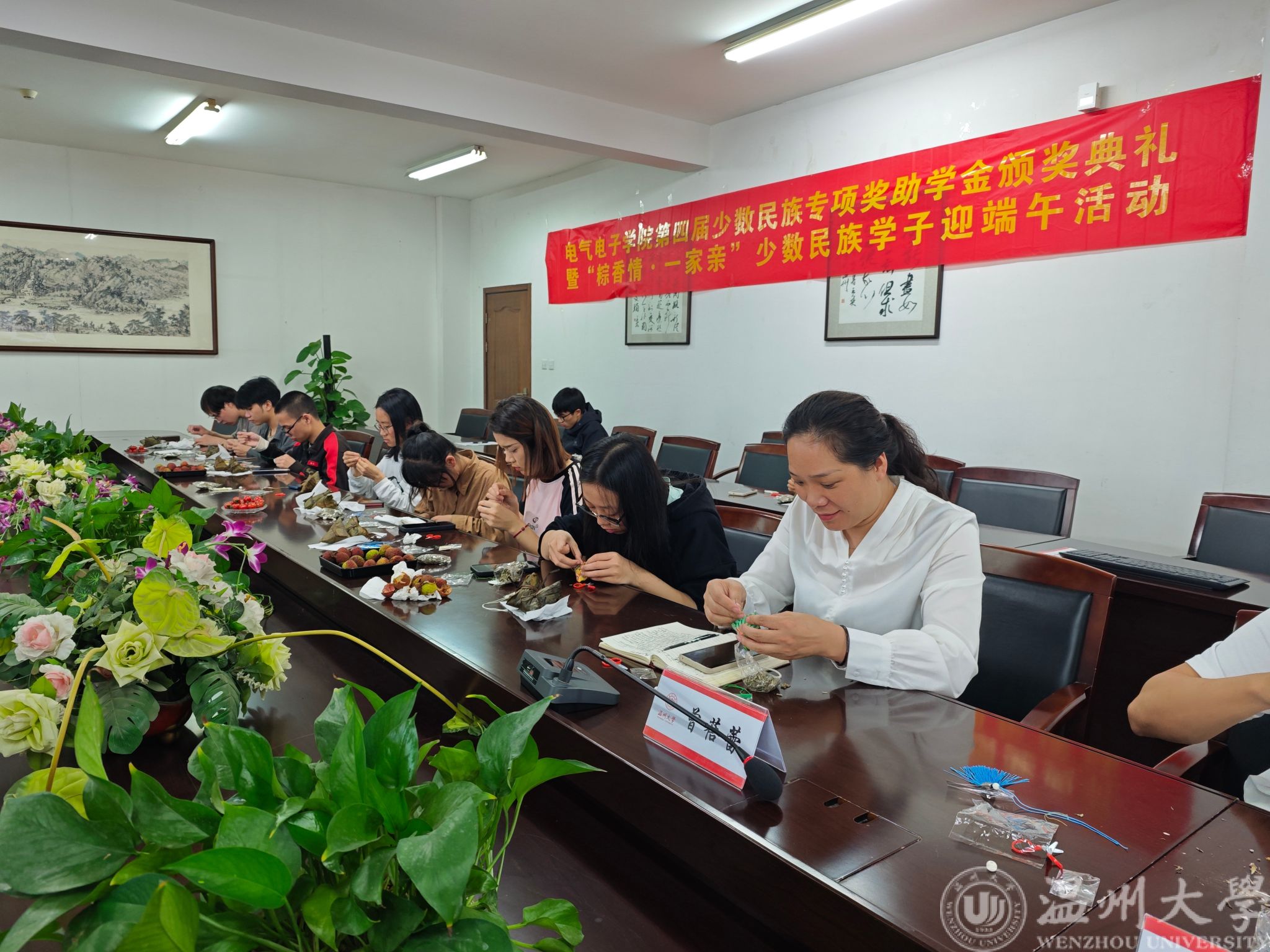 夏意渐浓,粽叶飘香,中华民族的传统佳节——端午节悄然而至。为庆祝这一承载深厚文化底蕴的传统节日,6月5日下午14:00,,球探体育比分网 在1A-502举办第四届少数民族专项奖助学金颁奖典礼暨“粽香情·一家亲”少数民族学子迎端午活动。球探足球 党委副书记曾蓓蕾、学工办主任廖晓安及球探足球 少数民族学子出席本次活动。活动由学工办辅导员陈海彤老师主持。