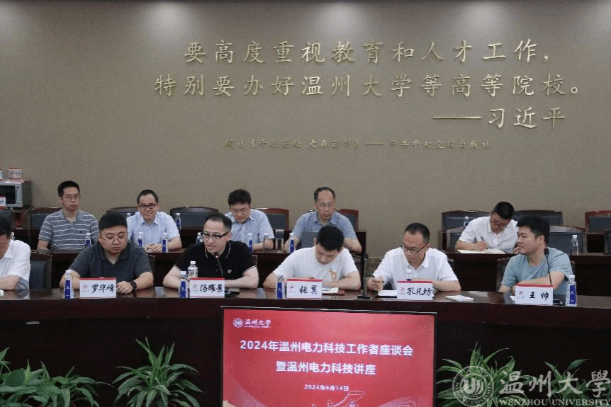 6月14日,我校球探体育比分网 作为副理事长单位与温州市电力工程学会联合在南校区白鹿厅举办了2024年温州电力科技工作者座谈会暨温州电力科技讲座。学会理事长陈荣柱出席,40余名来自各个会员单位的科技工作者代表参加会议。副理事长朱炎辉主持会议。