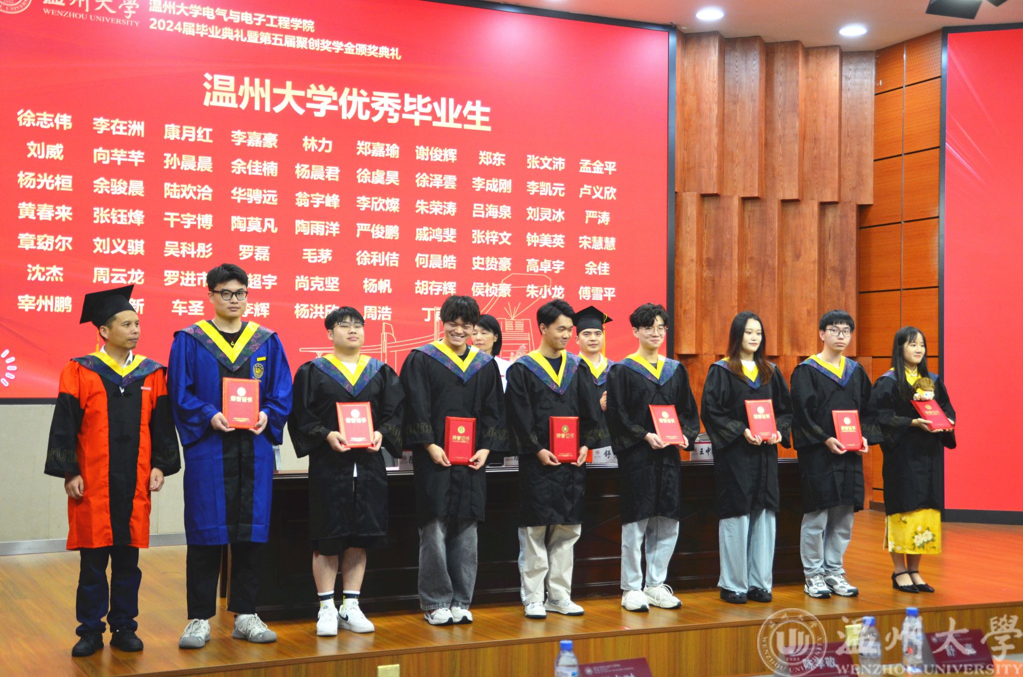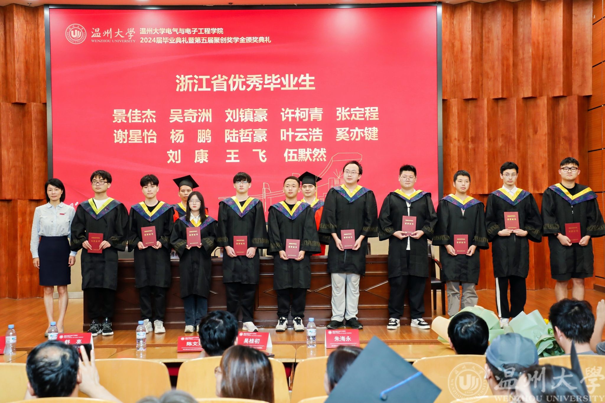 典礼上,表彰了浙江省优秀毕业生、温州大学优秀毕业生和“聚创奖学金”获得者。球探足球 党委书记陈文远、副院长陈孝敬、吴桂初教授分别为优秀毕业生和奖学金获得者颁奖。