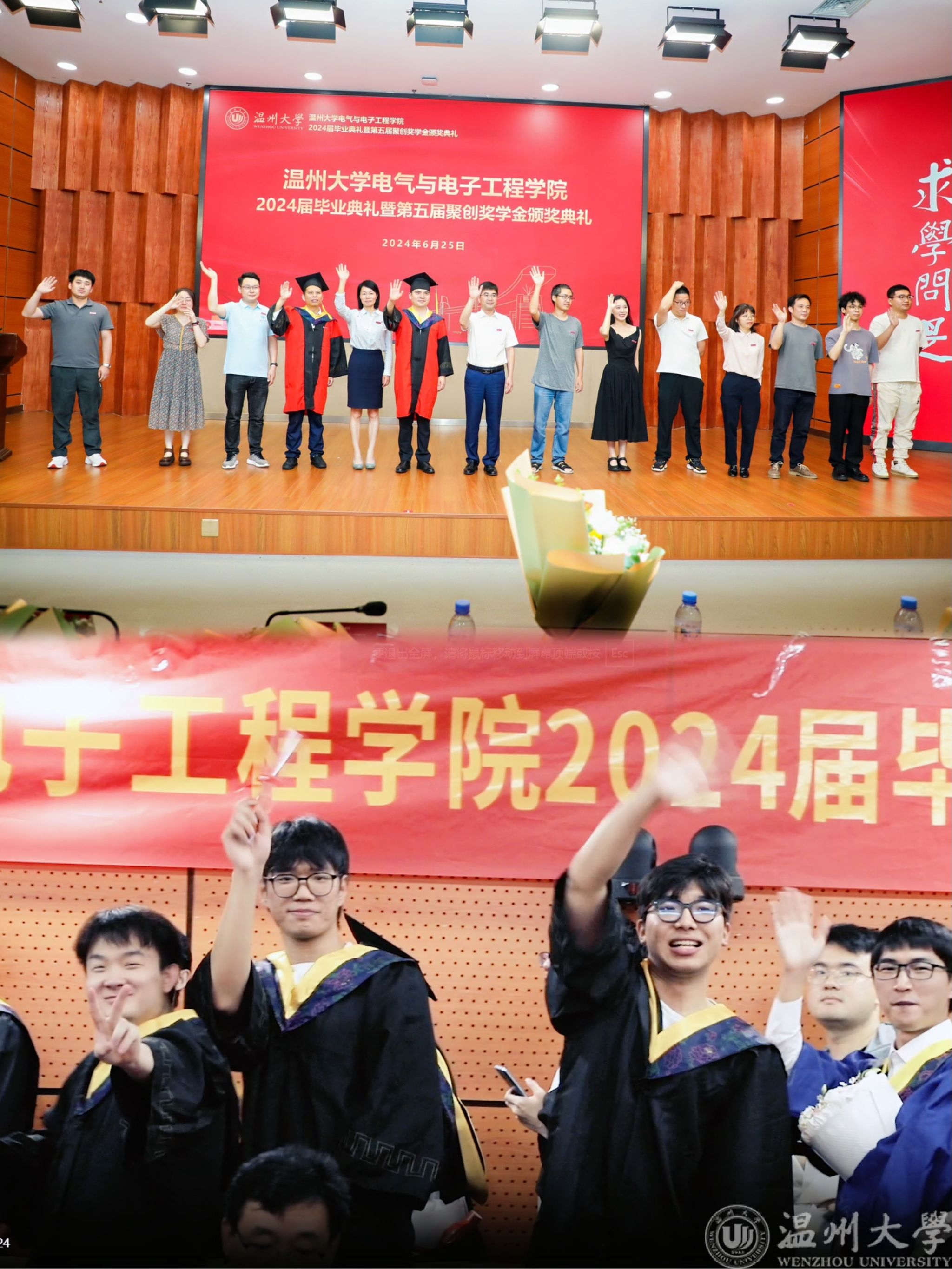 典礼分两阶段进行,在第一阶段,与会师生共同观看温州大学2024年毕业典礼暨学位授予仪式现场直播;第二阶段为球探足球 毕业典礼暨“聚创奖学金"颁奖仪式。