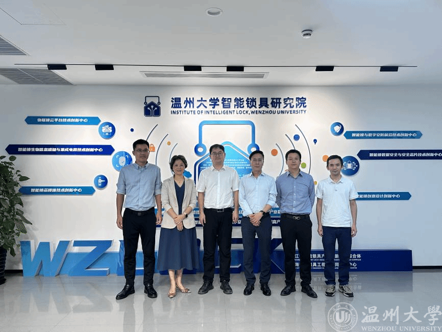 10月14日下午,温州大学副校长、党委委员王军,合作处处长熊琳,审计处处长陈小敏等一行莅临温州大学智能锁具研究院调研指导,球探体育比分网 副院长朱海永、温州大学智能锁具研究院院长阮秀凯热情接待。