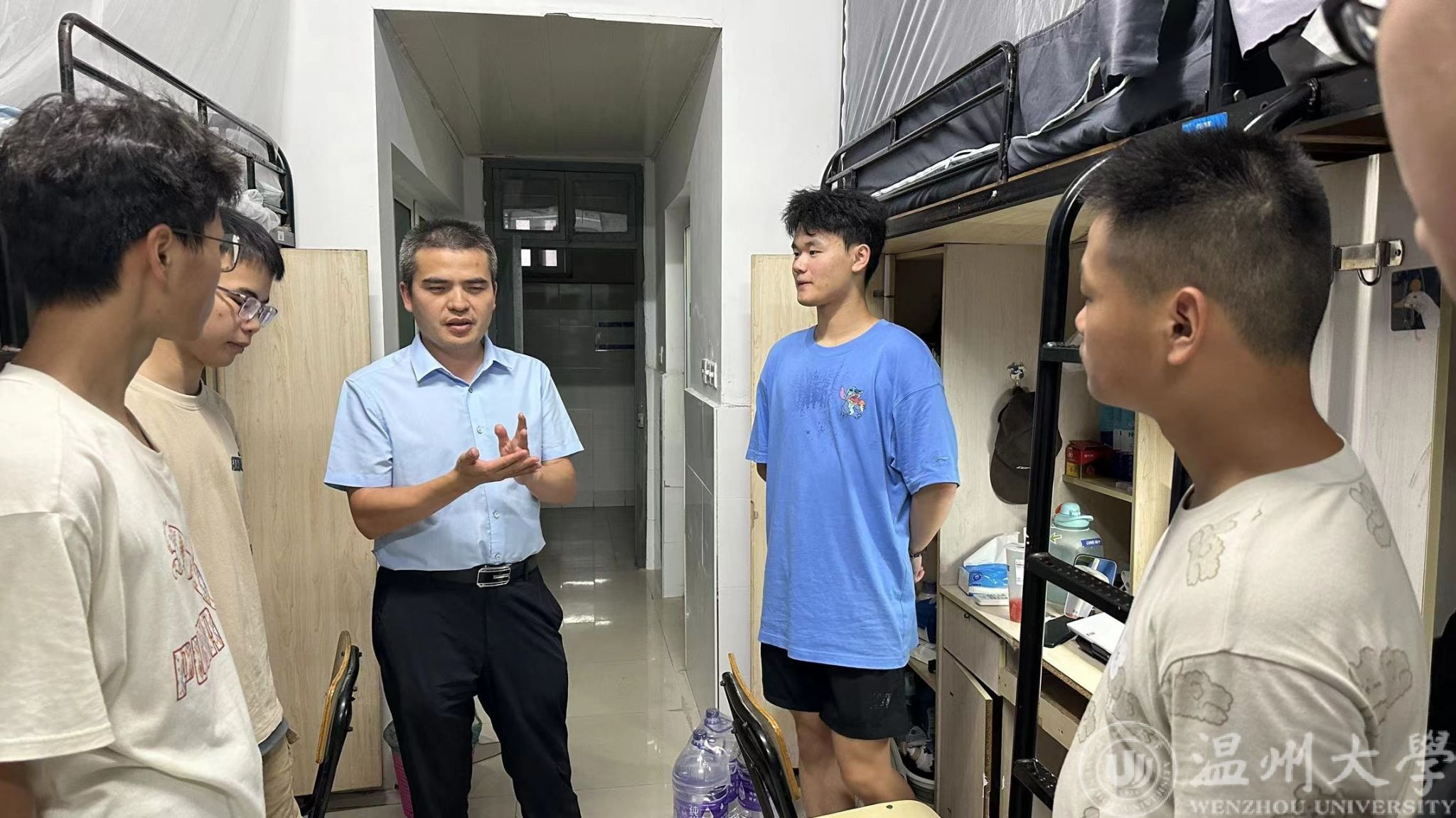 2024年9月5日,新生开学之际球探体育比分网 的领导们深入学生宿舍,为学生们送去温暖的问候与关怀。此次走访活动由球探足球 党委书记陈文远、院长舒亮以及副院长朱海永带队,旨在了解学生们的日常生活和学习情况,进一步拉近师生之间的距离。