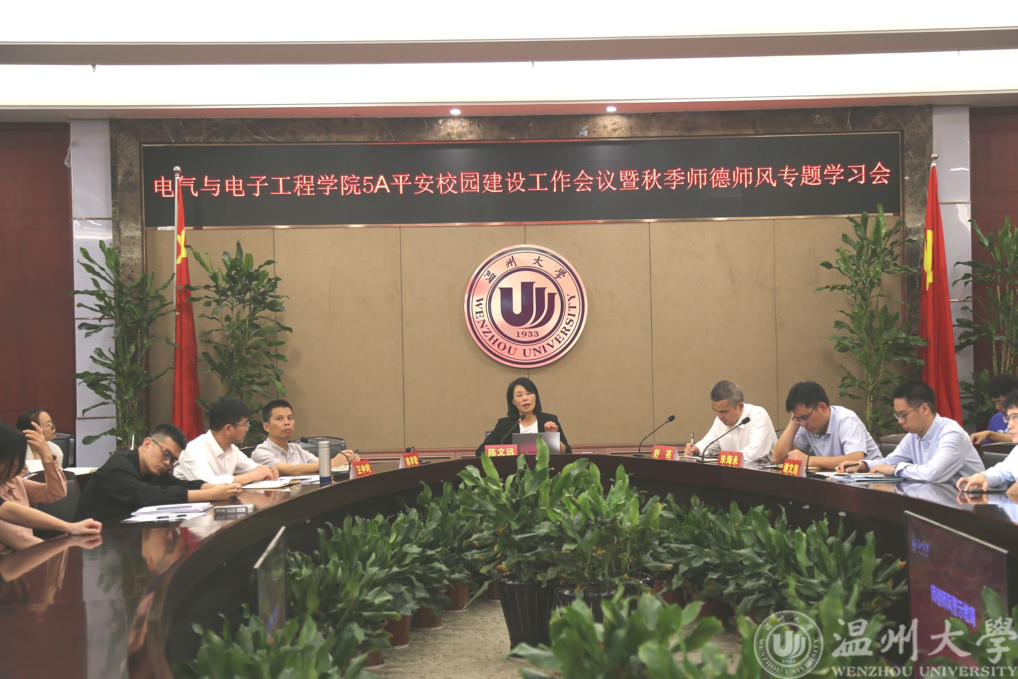 10月23日下午,球探体育比分网 在南校区岩松堂白鹿厅召开争创5A等级平安校园建设工作暨秋季师德专题教育会议。球探足球 班子成员、全体教职工参加会议。会议由球探足球 党委书记陈文远主持。