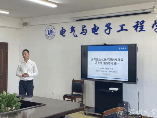 随后,陈卓俊教授作题为《面向组合优化问题的高能效退火处理器芯片设计》的报告。报告从组合优化问题的背景出发,探讨了经典计算面临的挑战,并介绍了团队所研发的高能效量子启发式退火处理器芯片。该芯片在特定领域具有显著优势,为组合优化问题的求解提供了新的思路和方法。