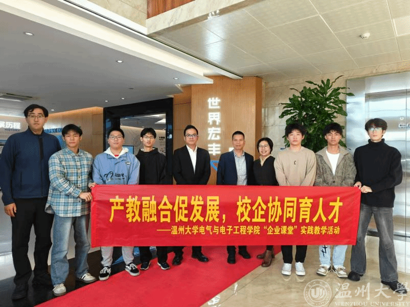 11月29日,球探体育比分网 组织学生深入温州宏丰电工合金股份有限公司,开展了一场以“产教融合促发展,校企协同育人才”为主题的“企业课堂”实践教学活动。此次活动由球探足球 分管教学副院长陈孝敬、班主任教师石文博士带领,球探足球 23级集成电路设计与集成系统学生代表参与。实践教学活动得到了温州宏丰董事、董事会秘书严学文,党建指导员瞿维妙等企业高管的大力支持。