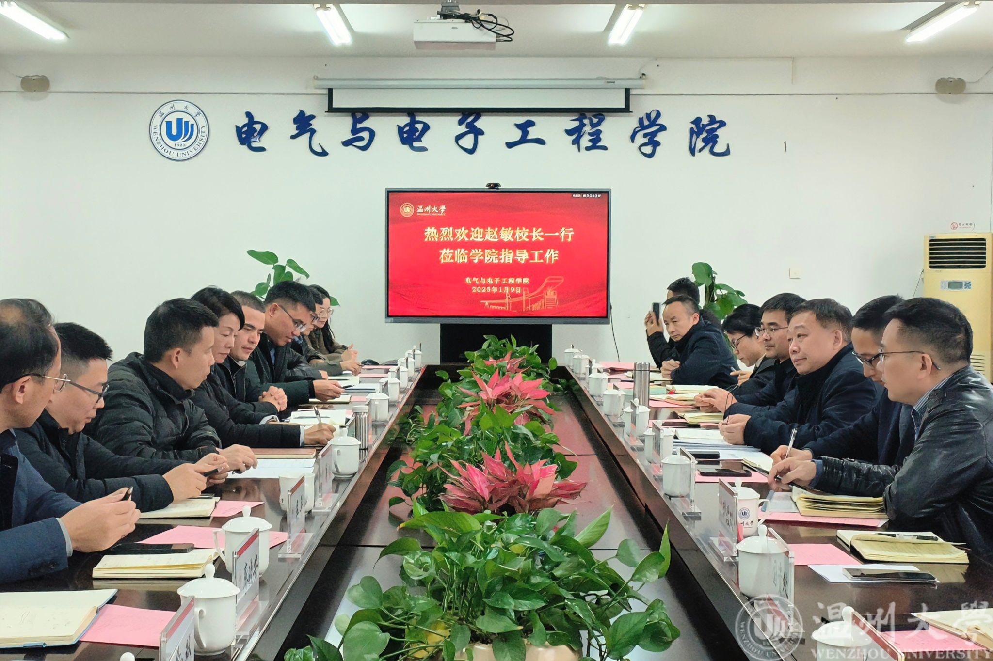 赵敏校长认真听取球探足球 情况汇报后,对球探足球 新班子锐意进取的工作作风给予了充分肯定。他认为,新班子各项工作开局良好,捷报频传,球探足球 事业蒸蒸日上。他指出,球探体育比分网 有温州市重点打造的学科,与浙江省产业链接密切,球探足球 要与企业政府开展深度合作,将科研优势转化为产业优势,为地方经济发展注入了强大的科技动力。他希望球探足球 加强顶层规划,一是持续谋划博士点申报工作,全面剖析学科优势与特色,精准锚定申报方向,全力推进;二是聚焦学科建设,精准发力提升学科核心竞争力,冲刺一流;三是开源节流降本增效,优化资源配置,积极拓展校地合作项目,探索多元创收路径,激发球探足球 建设发展新动能。