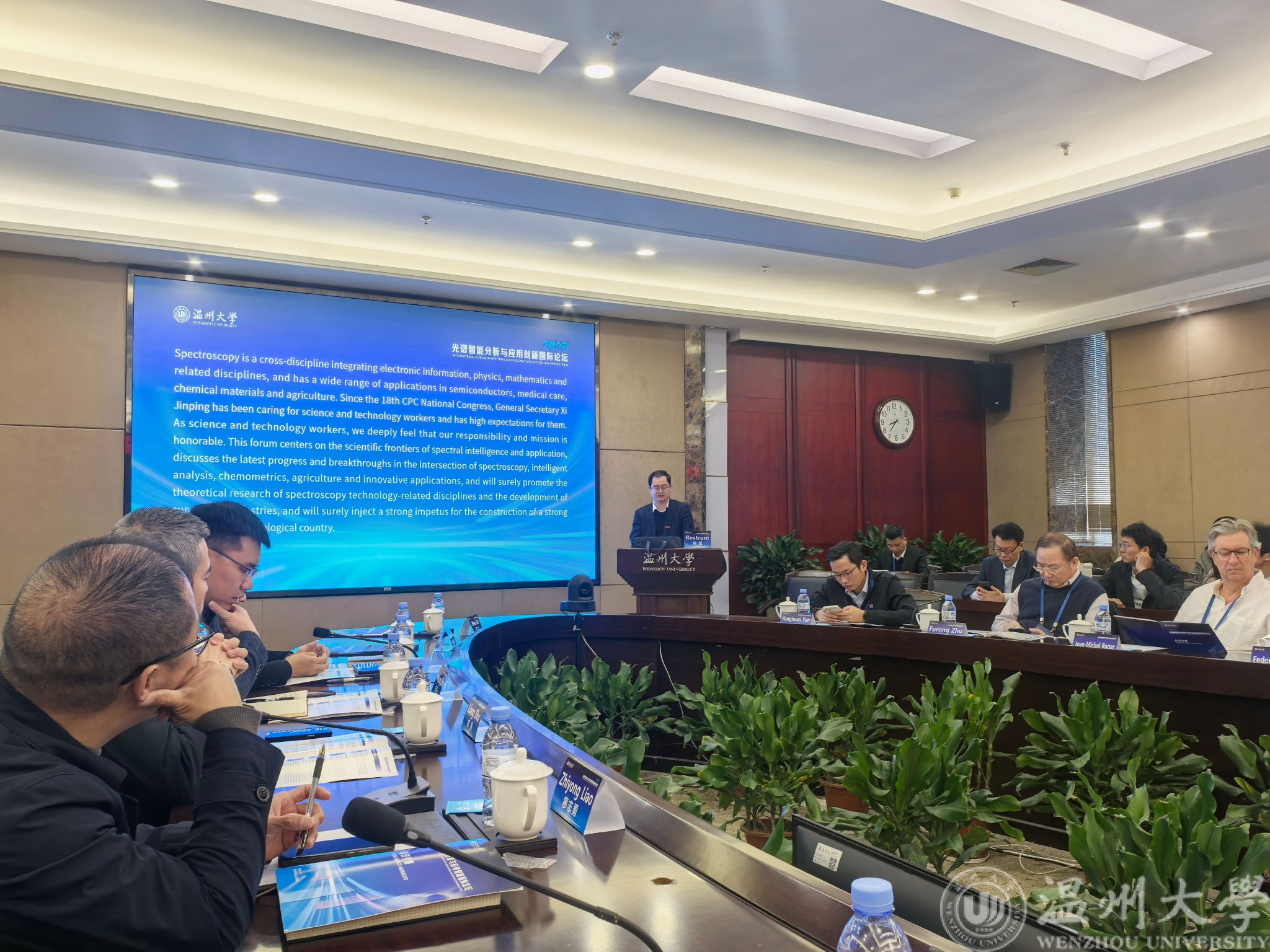 3月21日,“2025光谱智能分析与应用创新国际论坛”在我校顺利召开。本次论坛由球探体育比分网 承办,法国、西班牙、意大利、日本等光谱技术领域国外知名专家学者,以及西安石油大学李华教授、南开大学邵学广教授、中国农业大学彭彦昆教授、香港浸会大学朱福荣教授、石油化工科学研究院褚小立教授等多名国内权威专家共襄盛会。温州大学副校长、党委委员王军出席。论坛由球探体育比分网 副院长陈孝敬主持。