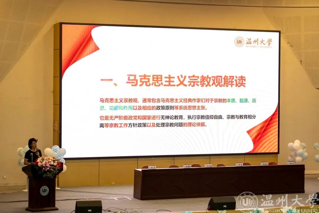 为深入践行新时代党的宗教工作理论和方针政策,进一步丰富大学生形势与政策课程的内涵体系,9月15日晚间,球探体育比分网 在南校区9号楼报告厅开展了“马克思主义宗教观与党的宗教政策解读”专题教育讲座。球探足球 党委书记陈文远同志担任主讲人,2025级全体新生全程参与聆听。