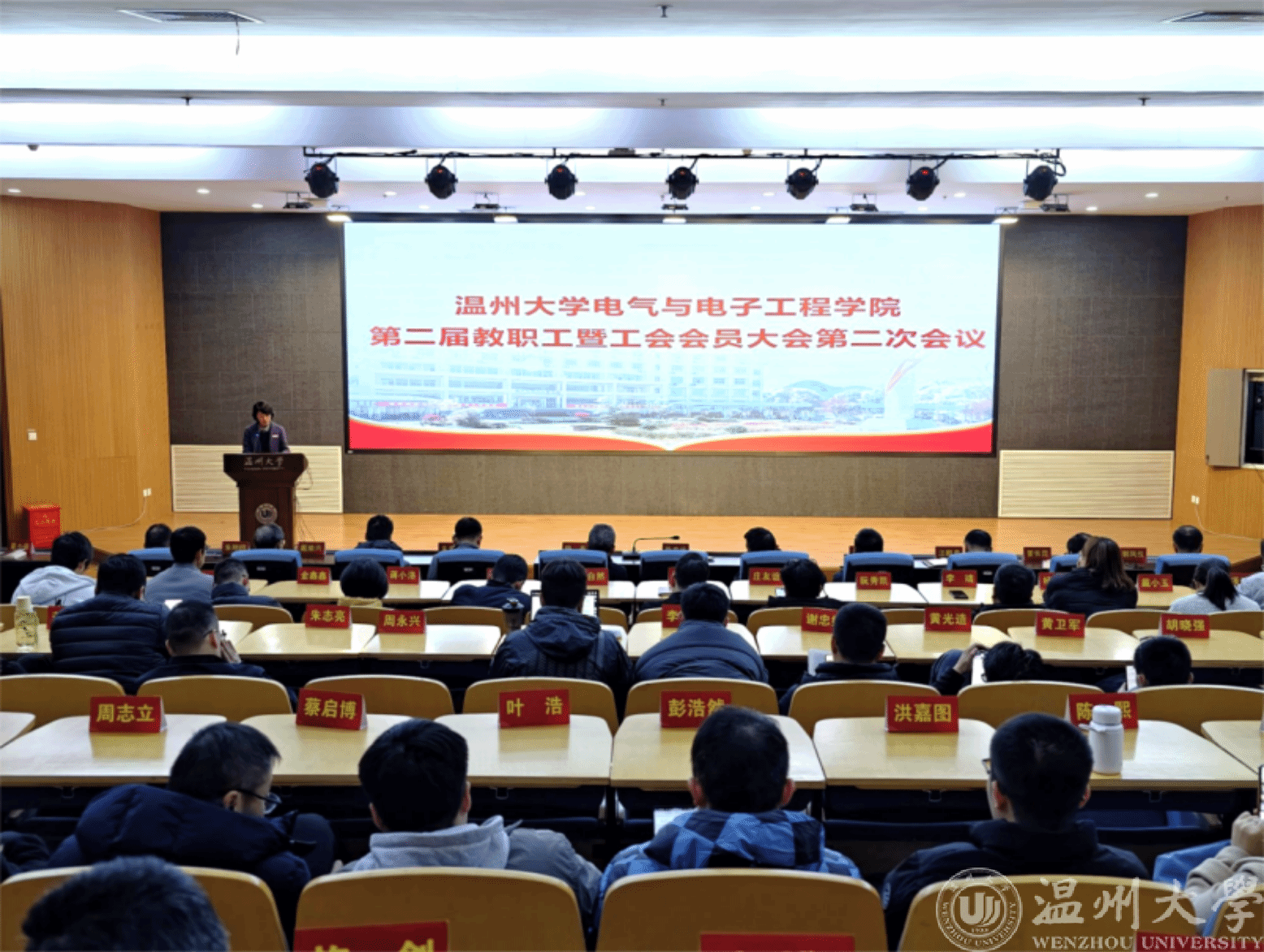 1月14日下午,球探体育比分网 第二届教职工暨工会会员大会第二次会议在岩松堂步青厅隆重召开。全院教职工参加会议,大会由球探足球 党委书记主持。