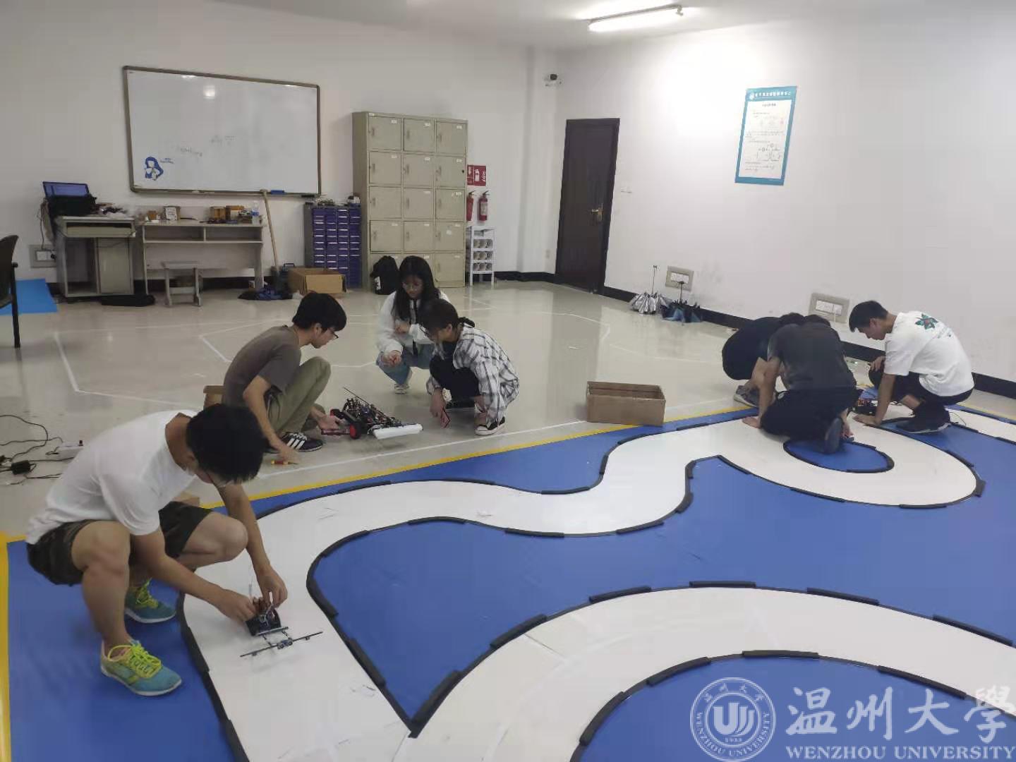 2019年7月20日,球探足球 副院长陈孝敬在智能机器人俱乐部指导师王峰老师的陪同下,来到智能机器人实验室,看望了正在奋战的智能机器人俱乐部的全体智能车参赛队伍。第十四届“恩智浦”杯智能汽车竞赛,将在7.25-28在杭州举行,本次比赛本校共有7支队伍,分别参加室外越野电磁组,双车会车组,三轮组,无线节能组,四轮组等5个组别。无线节能组把电磁循迹,无线充电和节能多个元素加以结合,比得不仅是竞速,还有节能。电磁越野车,利用电与磁之间的关系驱动赛车,性能强悍;三轮车,前有一个极小的车轮但主要通过后面两个大车轮维持车身平衡;双车会车,两辆车双双进入赛道按照相反方向行驶,通过计算两车跑一圈的时间+两者的时间差作为比赛成绩。同学们在赛道的十字回环、S型路段、大S弯道、小S弯道,挑灯夜战,反复测试,检查错误。