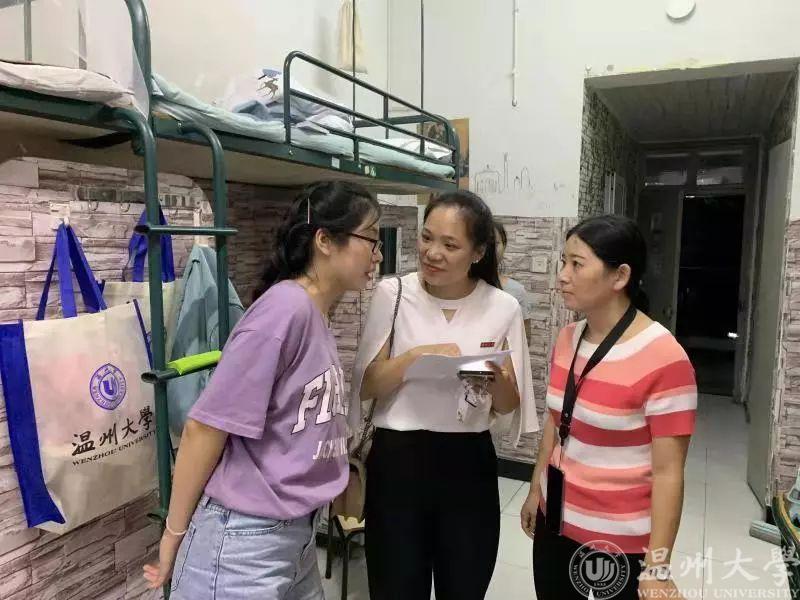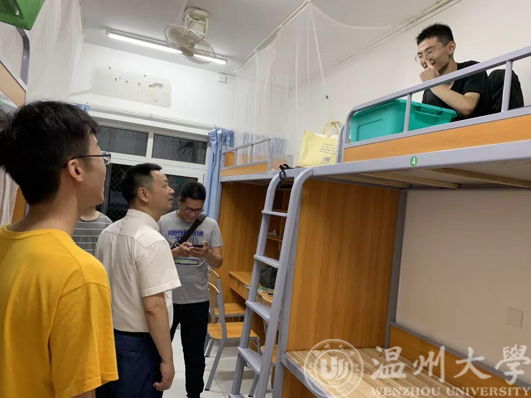 各位老师走进新生寝室,亲切询问了各位同学入校后的感受以及对温大的印象,与新生交谈籍贯、家乡,向大家介绍温州风土人情。同时了解同学们的实际困难,对部分问题,老师们做了详细解答,并现场办公为研究生提出的门禁等问题与学区领导沟通解决。在专业学习上,领导们给予了良好的建议,也叮嘱各位新生把学习摆在首位,学好专业课,提升专业技能。与此同时,鼓励新生积极参与社会实践、科研竞赛,在实践中找到自己的突破口,增长本领,成为更优秀的自己,并自觉把个人的理想追求融入学校发展、国家发展事业中去。最后,老师们也再次叮嘱新生同学们要做好防诈骗、防盗窃、交通安全、消防安全等各项工作。