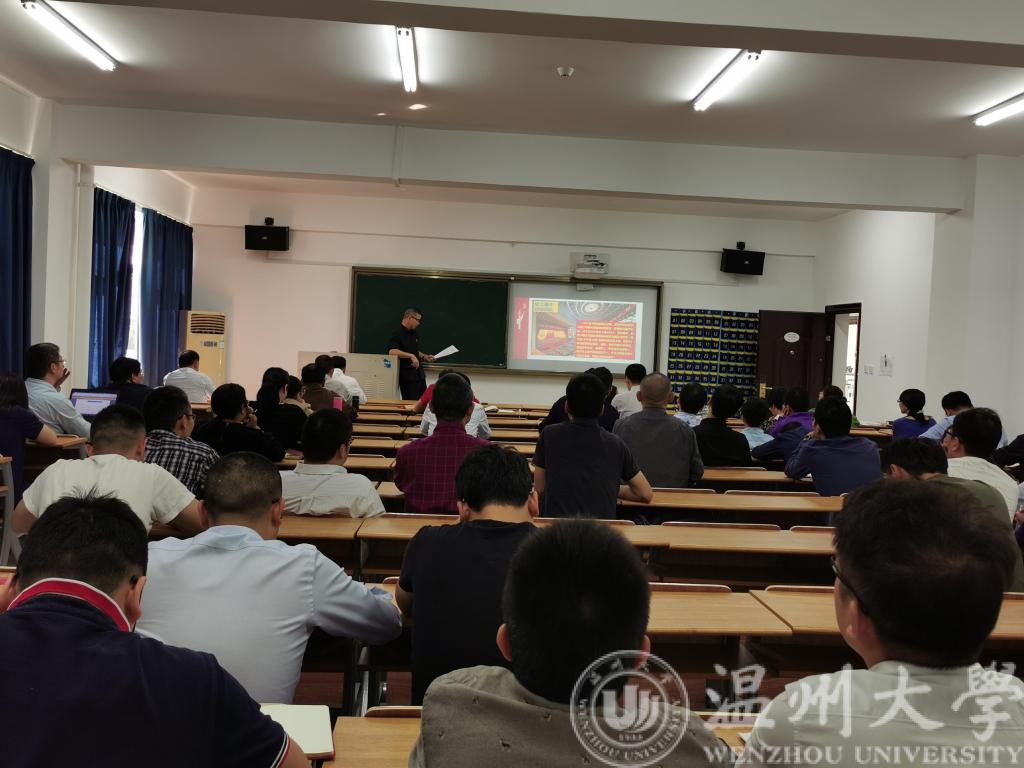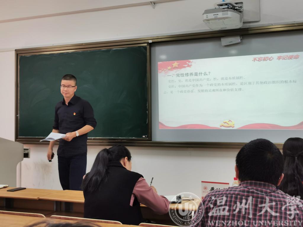 10月23日下午,球探体育比分网 “不忘初心、牢记使命”主题教育书记党课暨教师理论学习会在1A207室召开,球探足球 党委李方强书记做题为《持续加强党性修养是新时代党员“守初心”的重要法宝”》的党课,球探足球 全体教工参加了学习。