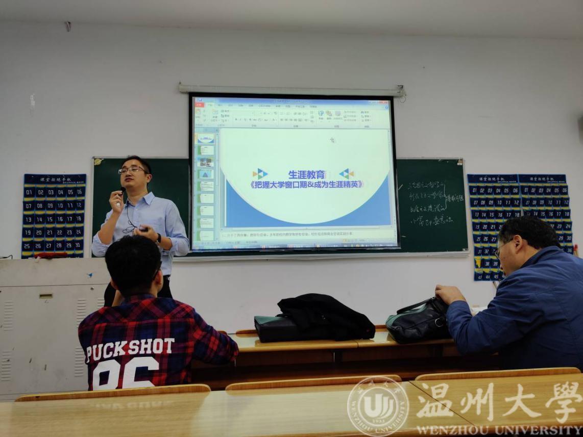 2019年10月31日晚19点,为了使同学们能够更好地掌握大学生活的罗盘,能够做到“我的大学,我做主”,球探体育比分网 电气工程系在教学楼1B402教室举办了职业生涯讲座。本次讲座有幸请到了吴玉伟老师来和同学们一起畅谈如何把握大学窗口期,成为生涯精英。吴老师是国家一级职业指导师,国家二级心理咨询师,国家二级企业人力资源管理师,国家认证生涯咨询师,中国人力资源和社会保障部企业EAP高级执行师,美国GCDF全球职业规划师,美国咨询师认证BCC国际职业生涯教练。