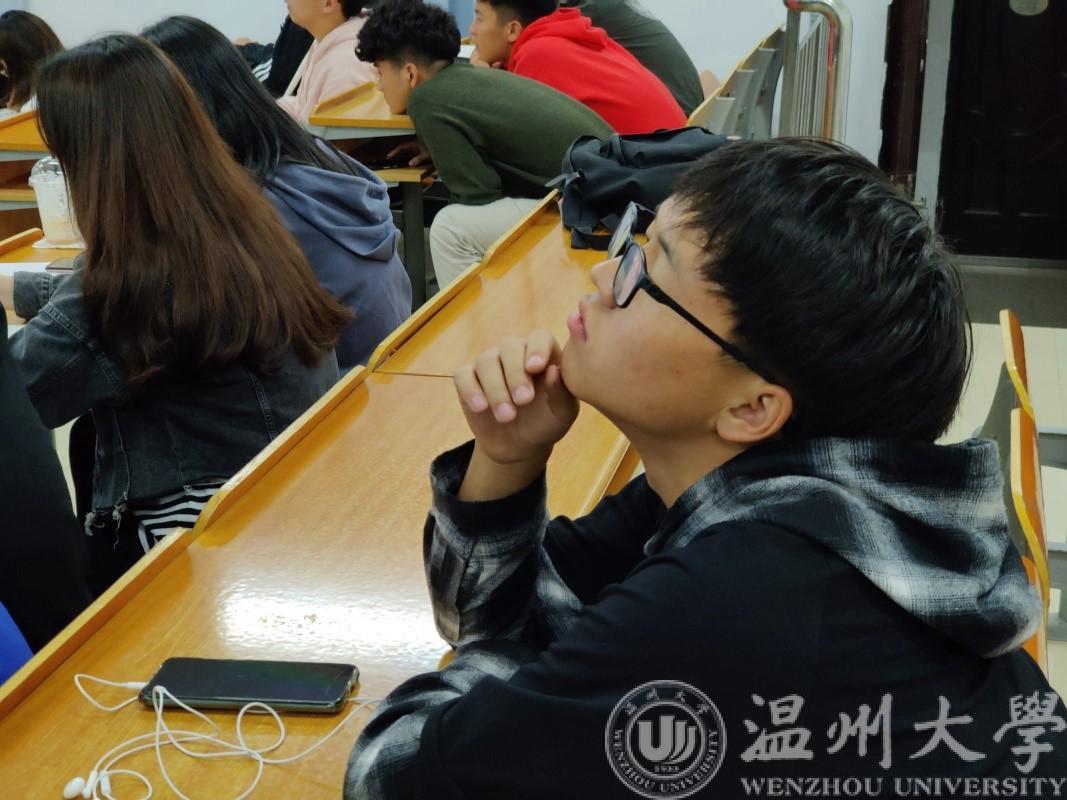 吴老师充分运用了一些案例名言以及自己的生活体会为同学们清晰地指出了未来发展的道路以及为社会做出贡献的六个要素:学历、知识、创业、资本、技术、体力。“生涯金字塔”生动地让同学们了解到了学历重要性。“金字塔的顶端是脑力工作。”吴老师认为在大学这个窗口期,同学们应当大一适应生活,养成习惯;大二参加活动,探索社会;大三聚焦生活,改写人生;大四创造选项,选择路径。