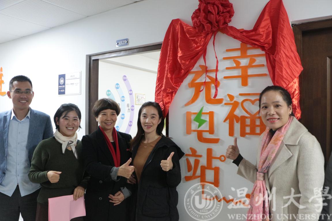 2019年12月5日,球探体育比分网 心理健康辅导站——“幸福充电站”揭牌仪式及第一期心理沙龙在南校区1A525辅导站举办。出席本次活动的领导有温州大学党委学工办副部长吕乐老师、球探体育比分网 党委副书记曾蓓蕾老师、温州大学心理咨询师张海音副教授,球探足球 全体辅导员、班主任代表朱海永老师和部分同学参加了活动。